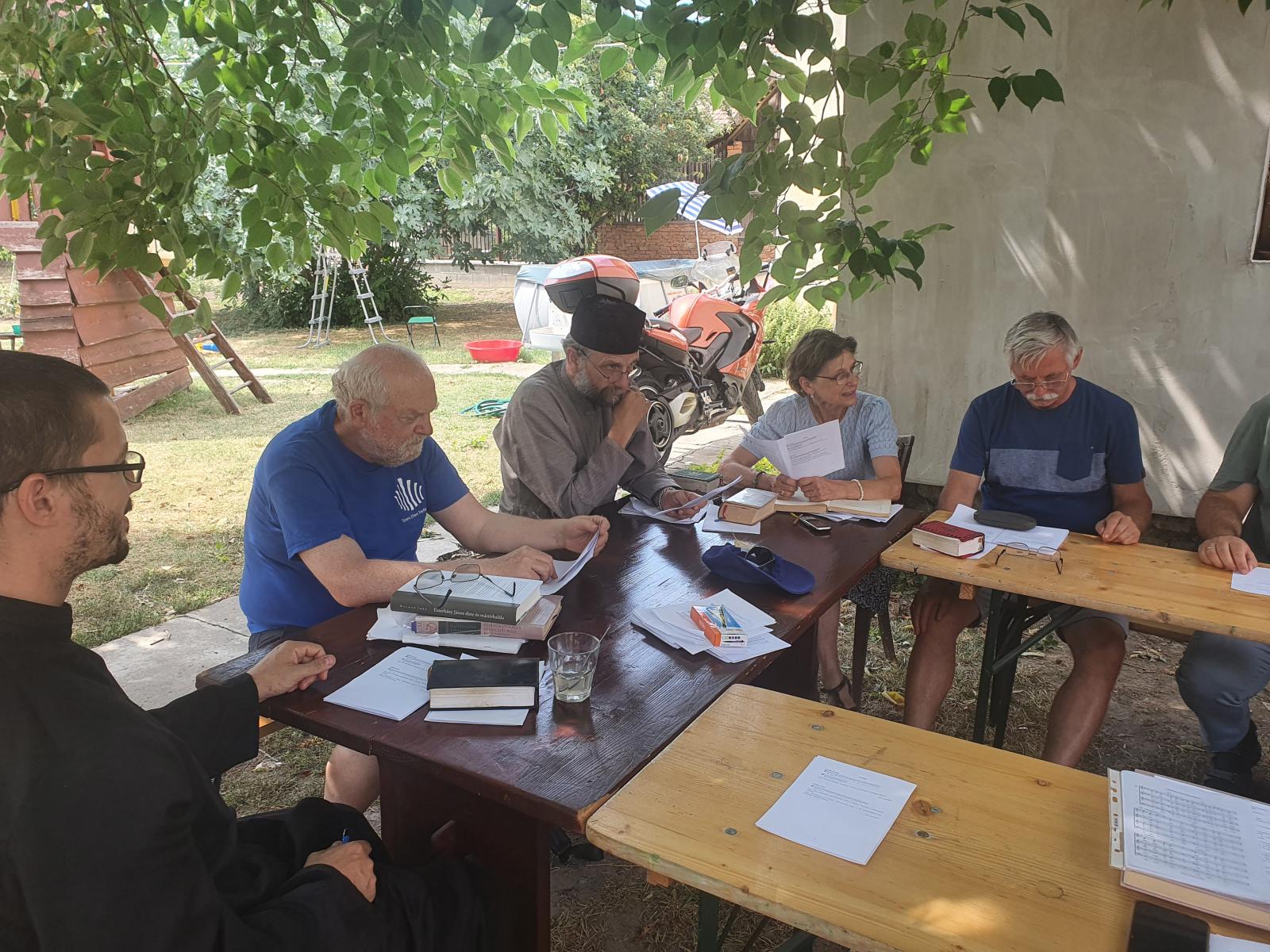 Az Istenszülő oltalma görögkatolikus templomban utrenyével indult az első nap. A reggelit a parókián fogyasztottuk el, ezután helyben, az árnyékot nyújtó fák alatt vettünk részt a tanításon. A nap közepén a déli istentiszteletet imádkoztuk el, ebédre a városban lévő Kalász étterembe sétáltunk át. A délutáni tanítás a szállást is nyújtó HSZC Návay Lajos tagintézmény kollégiumában kapott helyet, 18:00-órától vecsernyét végeztünk, majd ismét a parókián étkeztünk. A tanítást Fülöp érsek-metropolita atya tartotta, akihez pénteken csatlakozott dr. Bubnó Tamás karnagy úr, a Szent Atanáz Hittudományi főiskola docense.