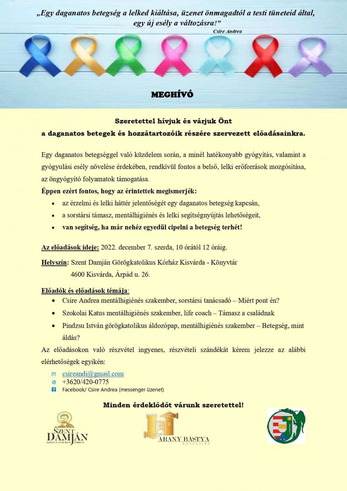 December 7-én néhány óra erejéig lelki megerősítést, bátorítást kaphatnak az érintettek, hogy a közelgő ünnep csillagának a fényét a betegek és hozzátartozóik számára is felcsillantsák az előadók.