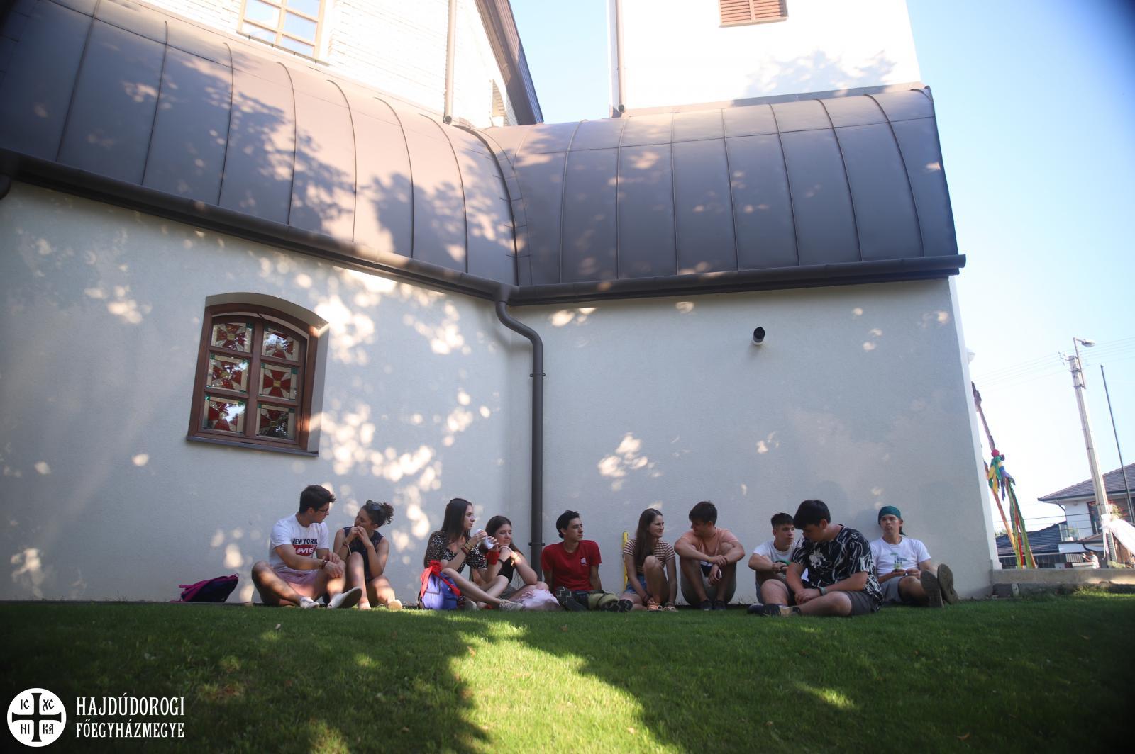 Egész nap végig nagyon meleg volt, így már az első nap igen embert próbáló volt mindenki számára, jól is esett az ifjúságnak a Dégenfeld Kastély pazar látványt nyújtó kertjében megpihenni. Ebben az impozáns közegben vetítették le nekik az Otthon, otthon c. filmet. A világszerte 2020-ban kitört koronavírus-járvány teljesen felforgatta az életünket. A határok lezárása miatt a csíksomlyói pünkösdi búcsúra zarándokolni kívánó százezrek is kénytelenek voltak otthon maradni. Ám így is voltak néhányan, akik útra keltek a Gyimesekből, és elzarándokoltak Szűz Máriához Csíksomlyóra. Közéjük tartozott a gyimesi születésű Renáta is, aki évek óta Budapesten él mint a Párbeszéd Háza munkatársa. Erről a vállalkozásáról szól a dokumentumfilm.
