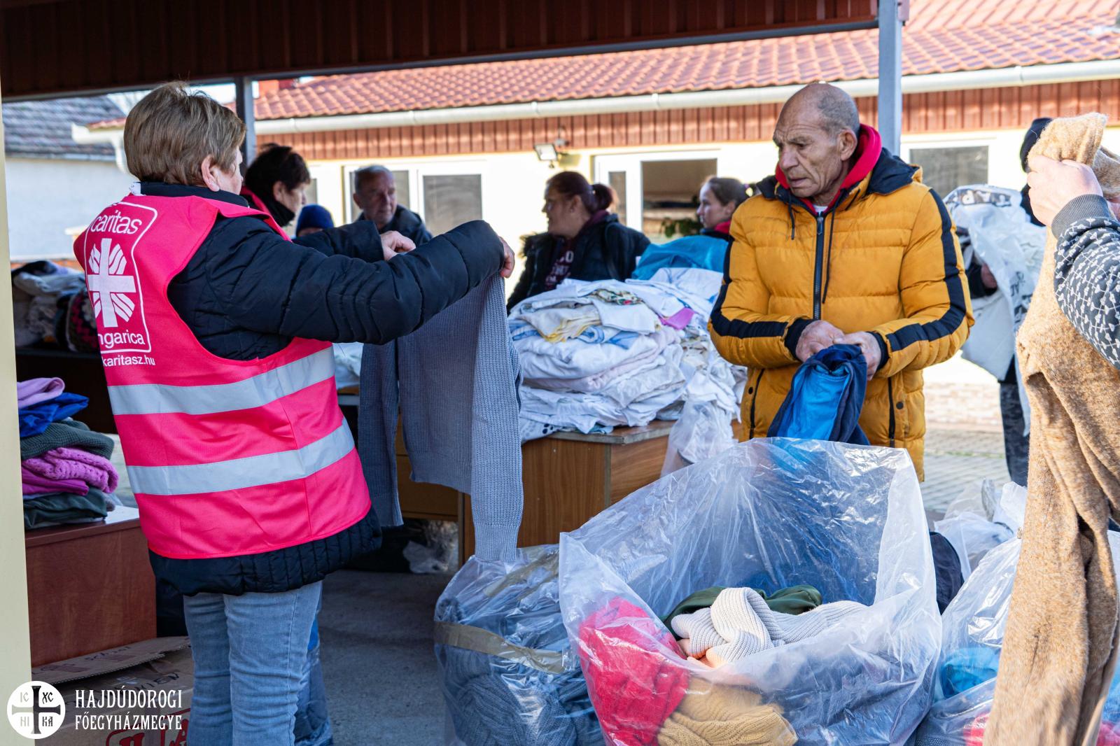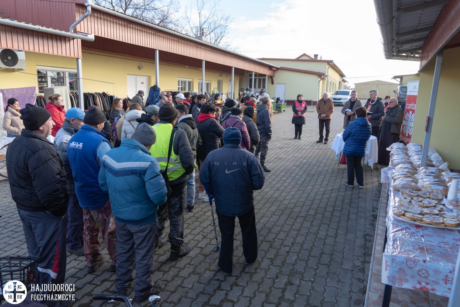 Tarapcsák János nyírmártonfalvi parókus áldotta meg a kenyereket, melyet ezúton is köszönünk a Mátyás Pékségnek: Garamvölgyi Attilának és családjának. Az étel mellett meleg ruhákat, takarókat, kabátokat, ágyneműt is osztottak a megjelenteknek, hiszen a téli időszakban nagy szükségük lehet rá a családoknak. Ennek koordinálásában Balogh Viktor, a Karitász civil vezetője volt segítségükre.