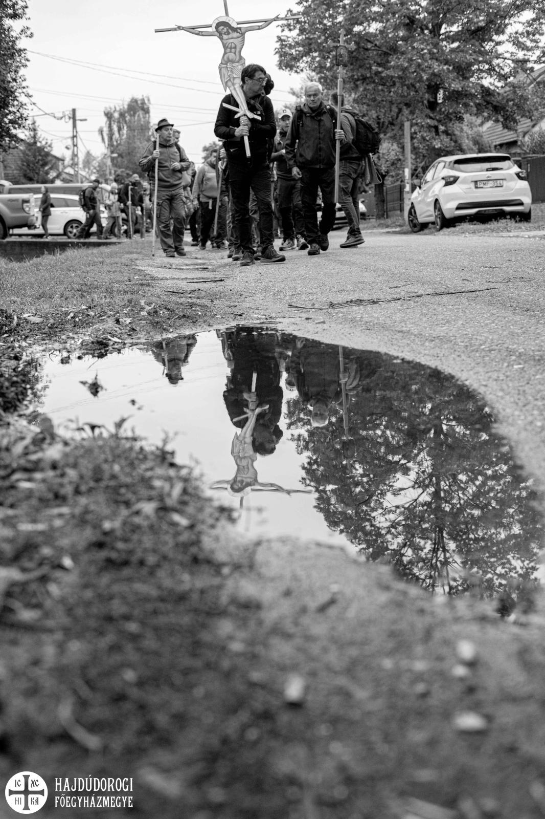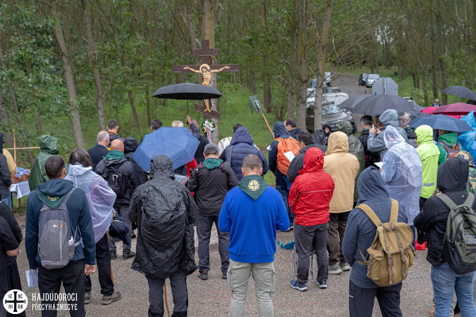 A Csapókerti templomtól indult idén is a zarándoklat. Martinkán minden évben meg szoktak állni az édesapák: a Sámsoni és Debreceni út kereszteződésében pihennek meg az első 10 kilométer után, imádkoznak, reggeliznek. Most sem volt ez másként. Az évek alatt fogalmazódott meg bennük a gondolat, hogy milyen nagyszerű lenne egy keresztet állítani erre a helyre.