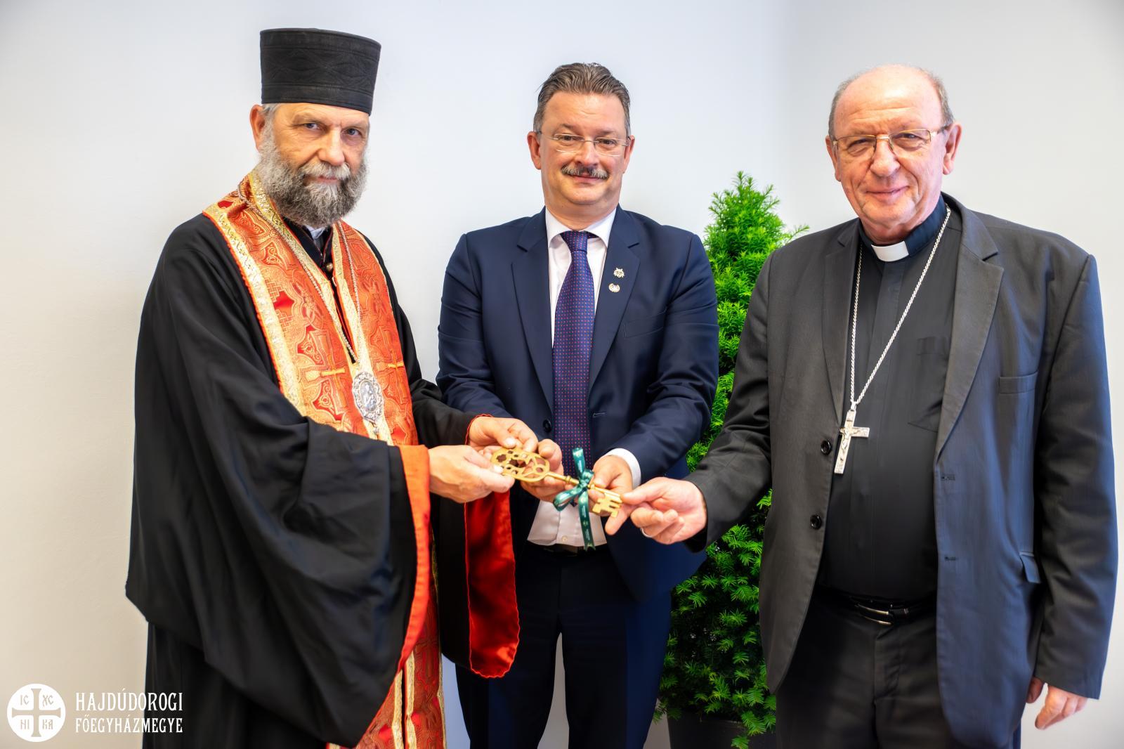 Szintén aznap egy másik fontos egyetemi helyszínen jártak az egyházi vezetők, hiszen a Nagyerdőn található főépületben kapott helyet egy új ökumenikus lelkiségi szoba és imahely. Az új közösségi színtér kulcsát Kocsis Fülöp görögkatolikus érsek-metropolita és Palánki Ferenc római katolikus megyéspüspök vette át Bács Zoltántól, a Debreceni Egyetem kancellárjától. Úgy fogalmazott: az egyetemi lelkészségek közösségi helyének átadásával a református Egyetemi Templom közelségében egy aktív vallási környezet jön létre. A most átadott hitéleti szobát a római és a görögkatolikus, valamint az evangélikus egyház közösen használja majd a következő tanévtől.