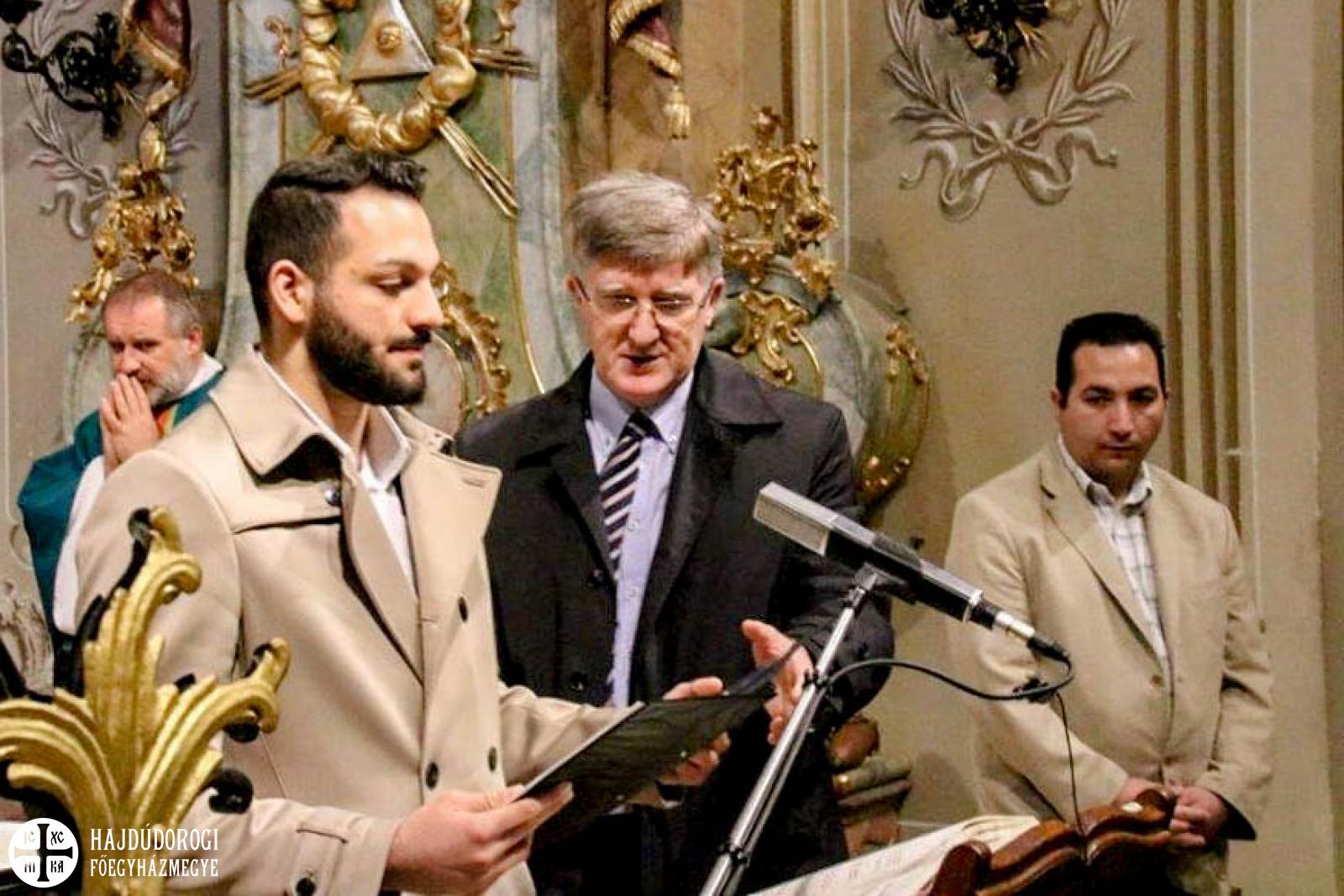A fuvolaművész úr bő repertoárjából hallhattunk újabb különlegességeket, majd átadták a Keresztény Szülők Alapítványa támogatásait. A keresztény munkaközösségek óvodáknak, iskoláknak adták át a gyűjtött adományokat. Következett a várva várt bemutatkozás, a rendezvény fő támogatottja, a Szent Miklós Görögkatolikus Roma Szakkollégium. Igazgatónő bevezetőjében elmondta, hogy Kapin István atya jóvoltából prezentáljuk a szakkollégiumot, aki egykor bizony jó bencés diák volt, rengeteg maradandó pozitív élménnyel. Szó volt a szakkollégium szakmai, spirituális felépítéséről, gyakorlati részéről, a kollégiumban zajló programokról, lehetőségekről. Jó volt látni, ahogy megindító tekintetek sugároztak vissza a nézőtérről, azt sugallva, hogy jó az, amit csinálunk és még jobb az, hogy adományaikkal segíthetnek nekünk, hogy majd mi is segíthessünk. Ezután a Katolikus Rádió főszerkesztője, Szikora József moderálta a vendégekkel való beszélgetést. (dr. Lenkovics Barnabás, Balogh Péter Piusz) Szó esett egyházjogról, egyháztörténetről, emberi jogokról és személyes tapasztalatokról.