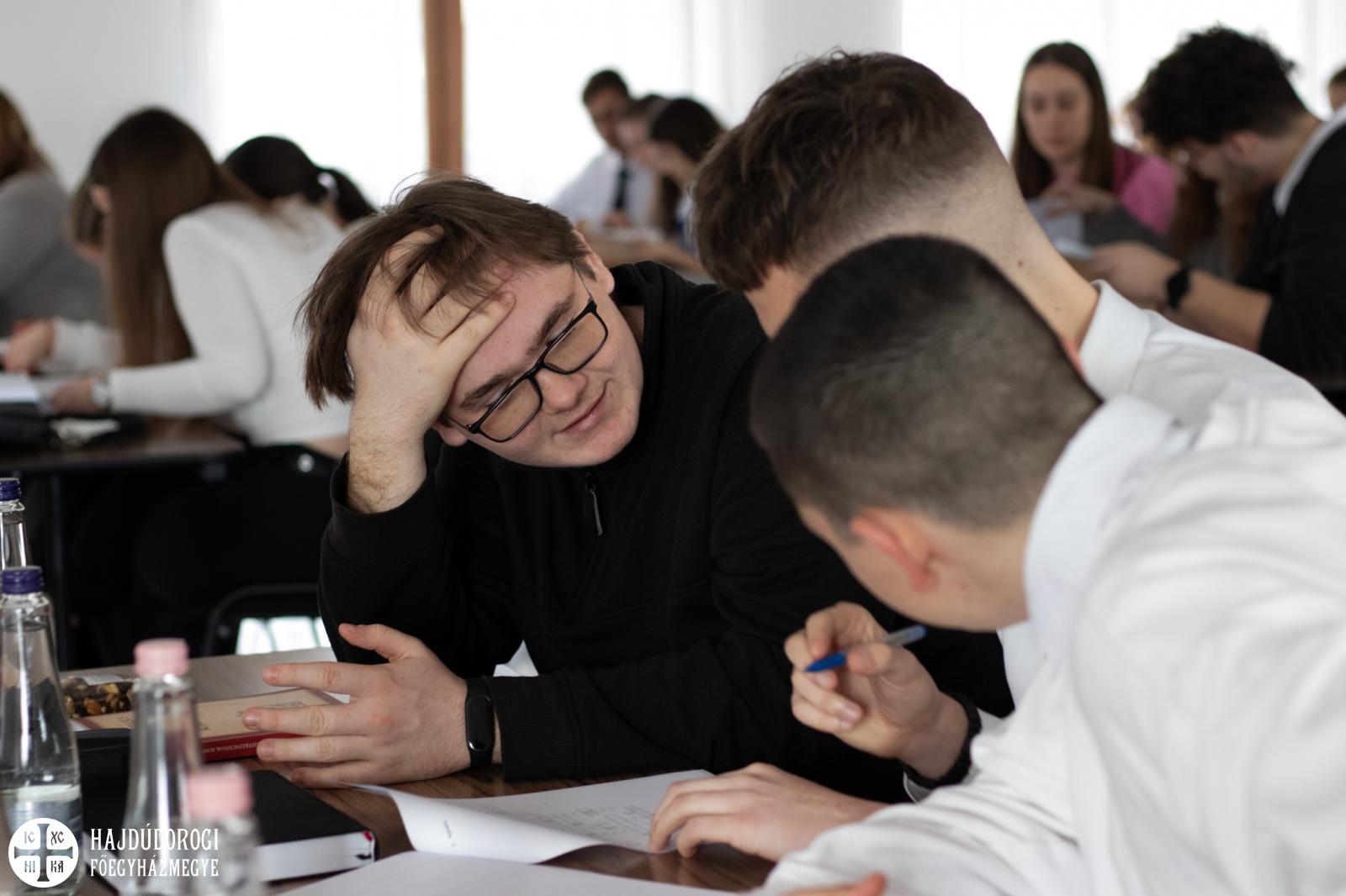 Az országos döntő a közös ima után az írásbeli feladatlap megoldásával kezdődött, amelyhez Kompendiumot, Szerkönyvet, Triódiont is kellett a versenyzőknek használni. A második feladat során a csapatok a korábban elkészített Tiktok-videóikat mutatták be a zsűrinek és egymásnak, melyben egy reményteli helyzetet mutattak be néhol viccesen, máshol meghatóan, de mindannyian nagyon kreatív módon. A harmadik feladat során egy himnuszt kellett írni megadott szempontok alapján, amelynek témája szintén a remény volt. A fiatalok ügyesen vették az akadályokat, a jó hangulatban telt versenyen mindenki a legjobb tudása szerint teljesített.