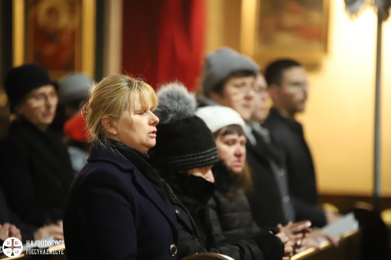 A vecsernye legszebb pillanatai voltak azok, amikor Fülöp érsek-metropolita atya háromszor megtömjénezte az oltárra terített, Krisztus testét ábrázoló sírlepelt, amit aztán a magasba emelve vittek körbe a főszékesegyház körül. A körmenet közben fennhangon énekelték a hívek a tropárt: "Az istenfélő József levevén a fáról a te legtisztább testedet, tiszta gyolcsba göngyölé és illatos szerekkel ellátva új sírba helyezé." Majd a sírlepel alatt fejet hajtva léphettek be ismét a templomba. A szertartás végén a virágokkal díszített szentsíron elhelyezték a liturgikus kendőt, amit csókkal illethettek a hívek is.