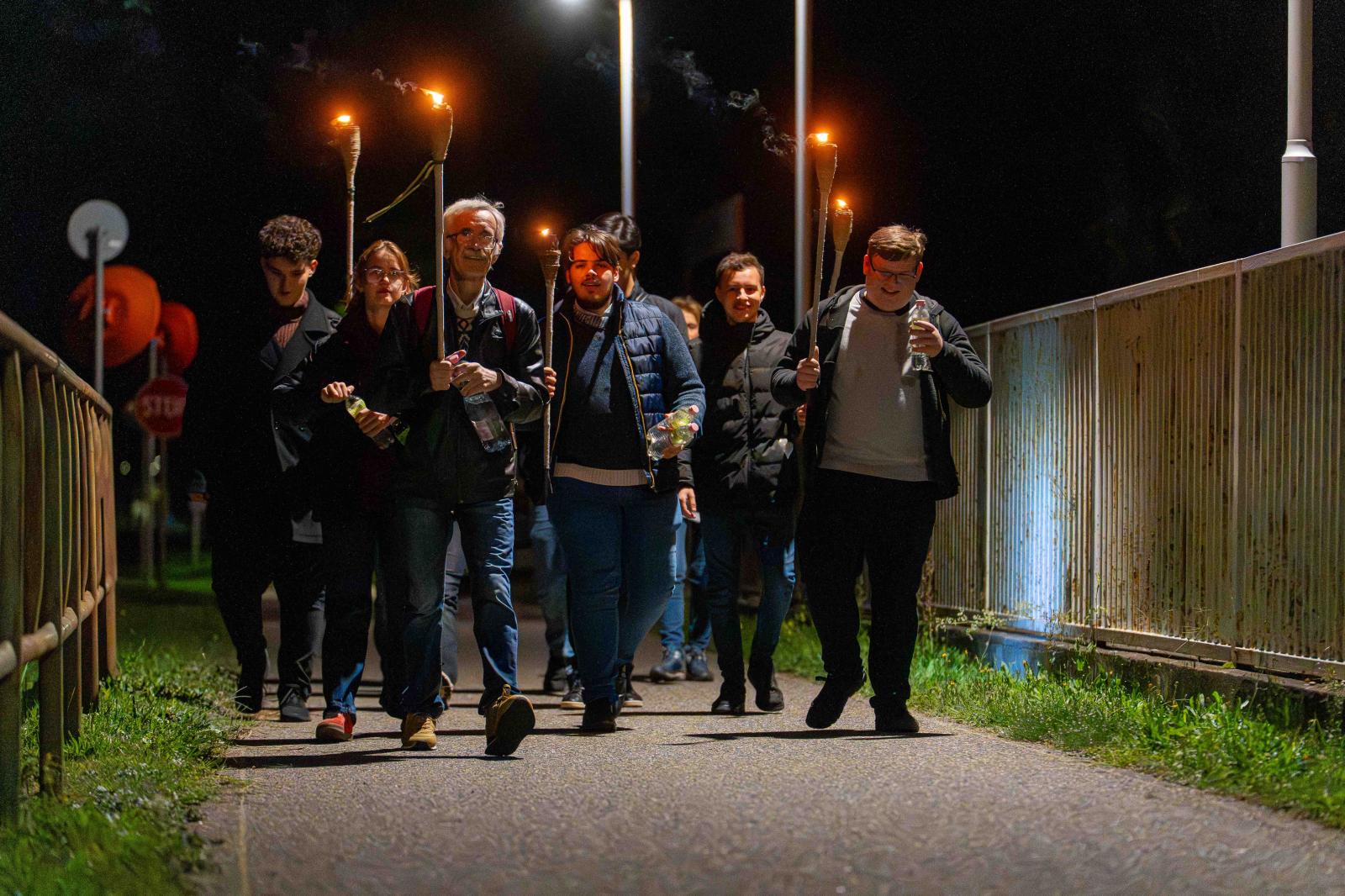 Este 10 órakor indult el az éjszakai zarándoklat Nagykállóból a mintegy 7 km-re fekvő Biribe. A zarándokok induláskor vizet, csokoládét kaptak és magukkal vitték a Péter atyáról készült szentképkártyát. A fáklyás menet élén a zarándokkereszt mellett Orosz atyának Makláry Teréz ikonfestő által készített ikonja haladt. Ez a lelki utazás nemcsak a másnapi ünneplésre hangolt, hanem arra az időszakra is emlékeztetett, amikor az egyházüldözés alatt Péter atya éjszaka, a sötétségben vitte a remény fényét, éjszaka végzett családoknál szertartást.