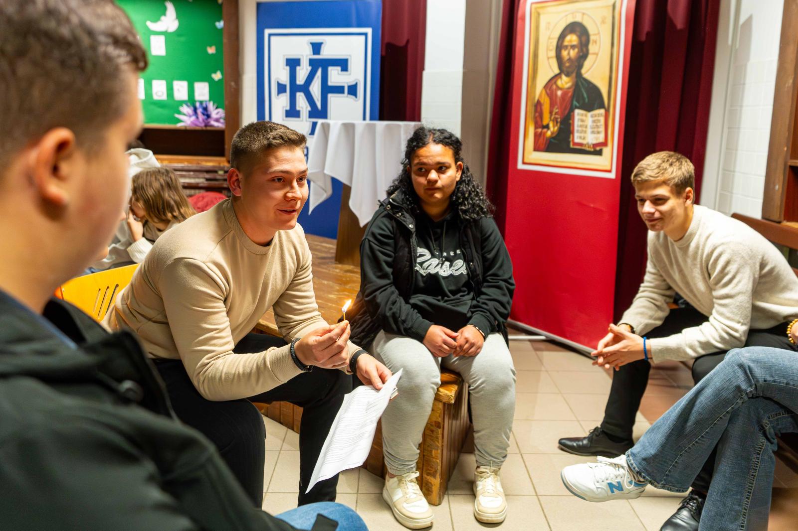 A szervezőcsapat fiataljai nemcsak a lebonyolításban vállaltak szerepet, hanem lélekben is készültek: az ifjúsági tanács az imaest előtt kétszer is összeült, hogy a csoportok koordinálásáról és az est tartalmi elemeiről egyeztessenek. Szeptember 26-án az Akathisztoszt követően a résztvevők a templomból átvonultak a Korányi Frigyes Görögkatolikus Általános Iskola, Gimnázium és Kollégiumba, ahol az ifjúsági tanács fiataljai által vezetett kiscsoportos beszélgetések zajlottak. A központi témát a boldogságmondások adták. „Boldogok, akik sírnak, mert ők megvigasztaltatnak” – a kiválasztott boldogságot a beszélgetések során olyan kérdésekkel dolgozták fel, melyek személyes válaszokat hoztak elő a résztvevőkből: mikor sírtál utoljára, ki az, aki megvigasztal, te magad hogyan tudsz vigaszt nyújtani másoknak. Ezek a csendesebb, bensőséges alkalmak lehetőséget adtak arra, hogy a fiatalok megosszák egymással tapasztalataikat, érzéseiket, s közösen keressék az evangéliumi vigasztaló jelentését a mindennapokban.
