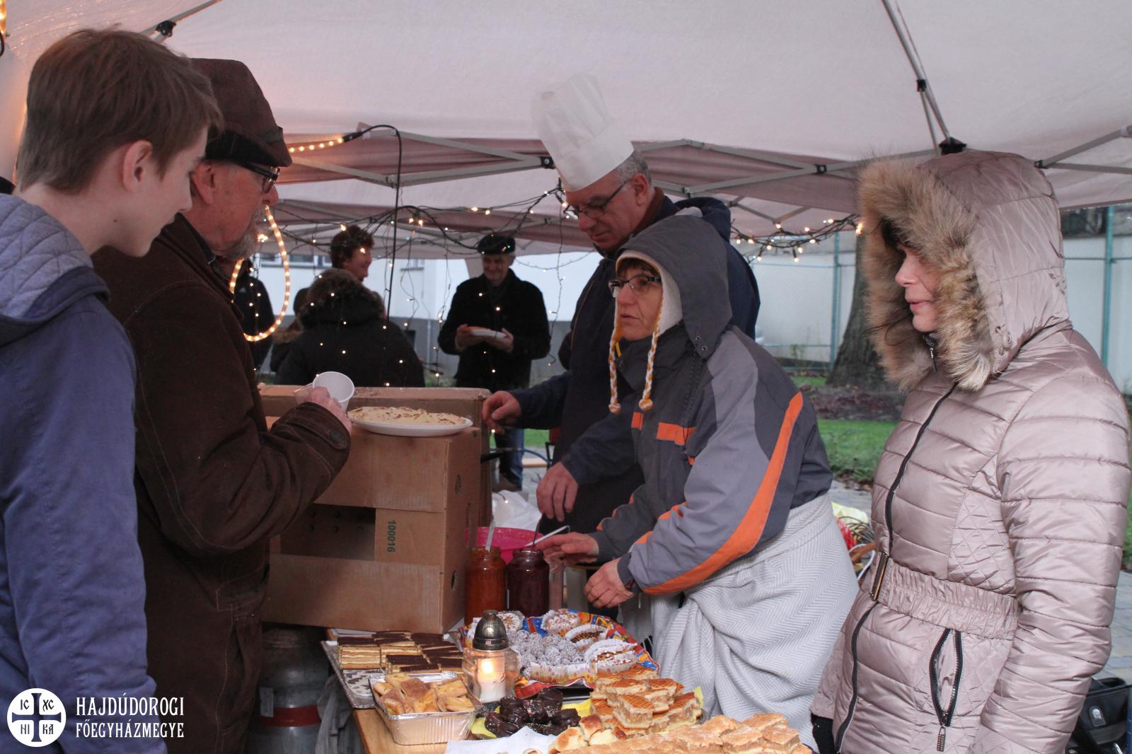 Az udvaron felállított sátrakban bemutatkoztak az egyházközségek: az ínyencek sorrendben kóstolták meg az utánozhatatlan csapókerti gofrit, majd a páratlan tócóskerti kőrözöttet, a kihagyhatatlan debreceni páros kolbászt, a ruszin forralt bort, az ellenállhatatlan téglási lepcsánkát, a Csaba atya féle józsai palacsintát és az íncsiklandó hajdúdorogi toroskáposztát! Aztán ha végzett az illető, tett még egy kört a sátrak között!