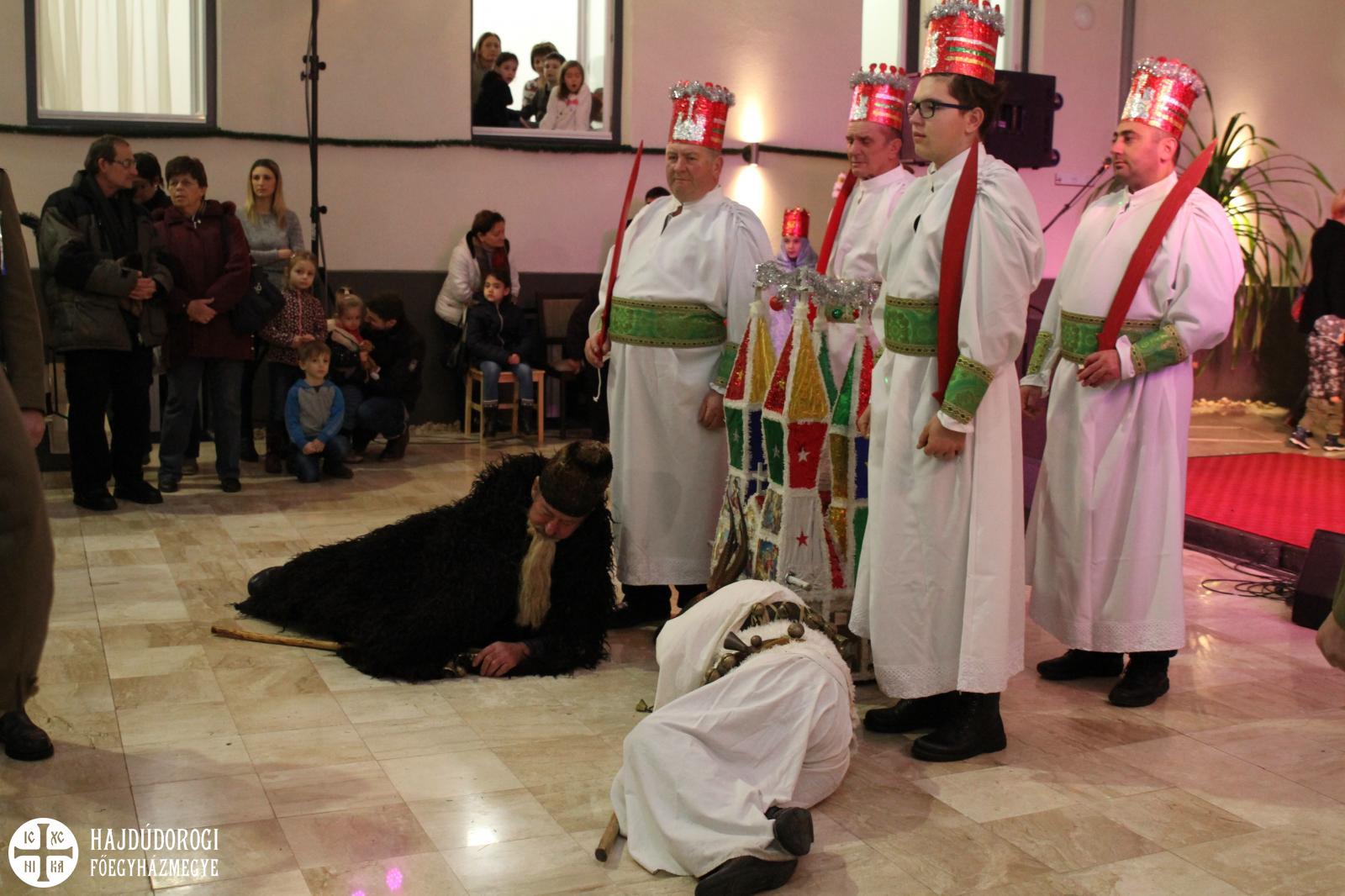 Egy meglepetés csoport is ellátogatott a programra: Debrecenben ugyanis ezzel párhuzamosan rendezték meg a Nemzetközi Betlehemes Találkozót, meghívásunkra pedig fellépett az Érseki Hivatalban Szemák Miklós atyával az élen a szatmári térség betlehemes csapata is!