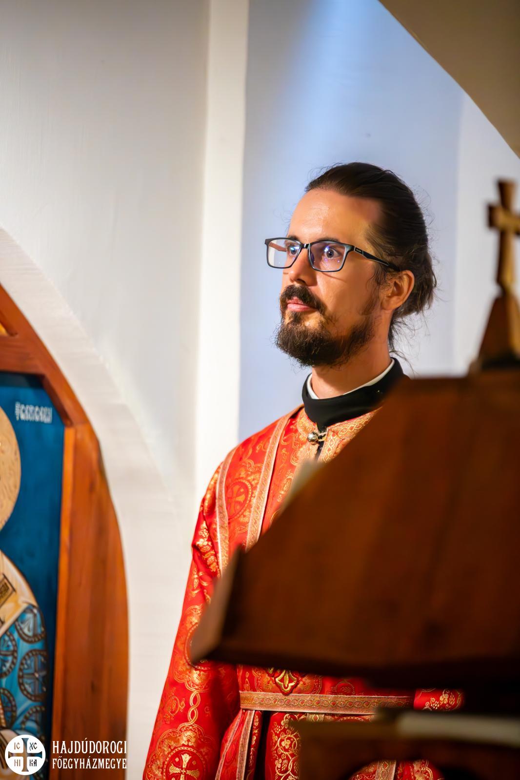 A kő, melyet az emberek elvetettek szegletkővé lett. Ezt a mondatot csakis úgy értelmezhetjük önmagunkra, ha Krisztussal egyesülünk, ha vállaljuk az ő áldozatát és kereszthalálát, és hozzá kötjük a mi saját sorsunkat. Igaz, egy diakónust nem neveznénk szegletkőnek, inkább csak egy kis része a nagy egésznek, aki szolgál, aki rendelkezésre áll, aki segíti a pap és a hívek imádságát, csakhogy Isten szemében, Isten rendjében minden egyes ember a legfontosabb, az ő architektúrájában ő a szegletkő. A mindig csöndes, visszahúzódó Zoltán testvérünk ma a legfontosabb személy a főegyházmegyében és az egész Metropóliában. És ez később sem felejtődik el. Legalábbis Isten előtt bizonyosan nem. A papi rendben való részesülés egészen magas piedesztálra állítja ezt a csöndes fiút. Ma őmiatta jöttünk össze ilyen sokan. Ez nem csak egyetlen napra szól. Zoli életében ennek a szakasznak a lezárulása az egyházunkban is új kezdetet jelent. Új gazdagodást, új reményt, új lehetőségeket. Hogy mindez hogyan bontakozik majd ki, egyelőre mi nem látjuk. Minden Isten kezében van. Mindenesetre nem véletlen az, hogy az első diakónus ünnepén indul el Zoltán a védőszentünk követésében. Bízunk abban, hogy a vértanúságban nem kell majd követnie, de a mindennapos meghalásokat, a teljes odaadást, Krisztusért akár az életének is az odaadását ebben a szolgálatban meg kell élnie. „Aki meg akarja menteni életét, elveszíti azt, de aki elveszíti az Evangéliumért, az megmenti azt.” Ez a diakónusi szolgálat kicsi halál, önmagadnak az elvesztése, hogy szolga, az egyház, a liturgia, az emberek, az Isten szolgája legyél.