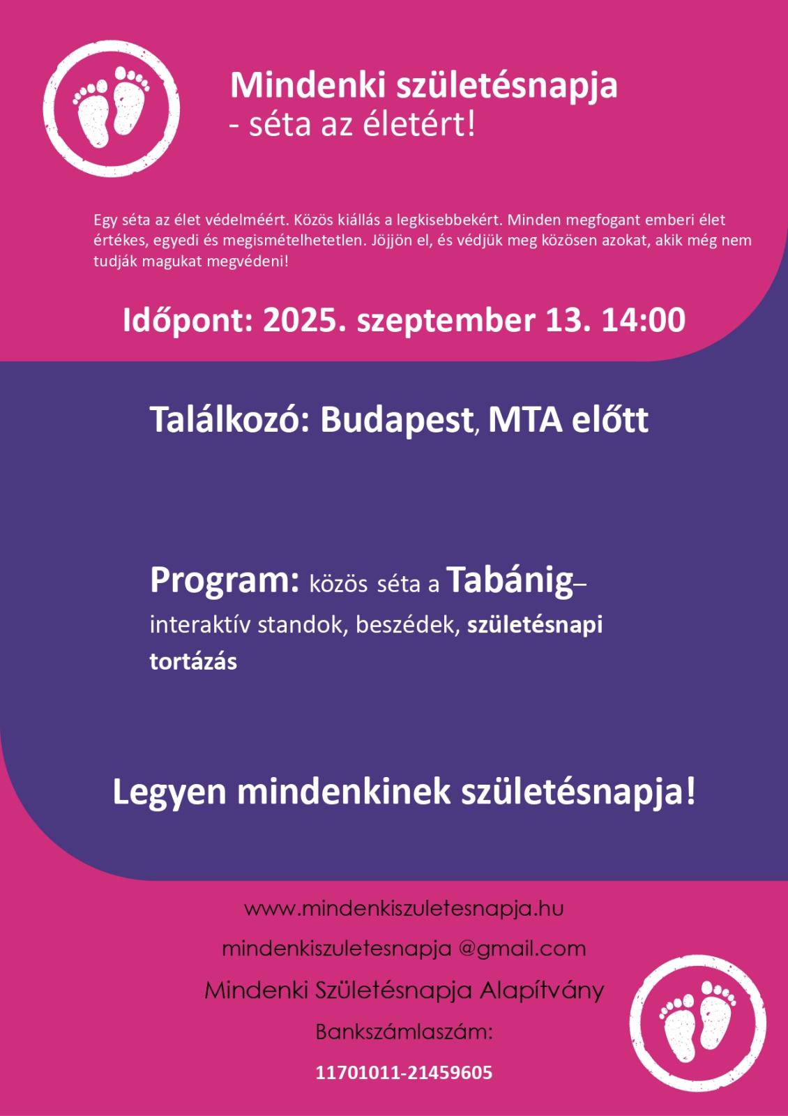 A kezdeményezés mottója: Legyen mindenkinek születésnapja! Magyarországon 21000 abortusz történt 2024-ben. Ez az adat naponta közel 60 magzati életet és az élve születések számához viszonyítva átlagosan minden negyedik várandóságot érinti. Ezeknek a meg nem született gyermekéleteknek a többsége megmenthető lenne, ha jobb társadalmi döntéseket hozunk; illetve, ha valódi és gyors támogatást nyújtunk minden esetben a válságvárandósoknak – vallják a szervezők.
