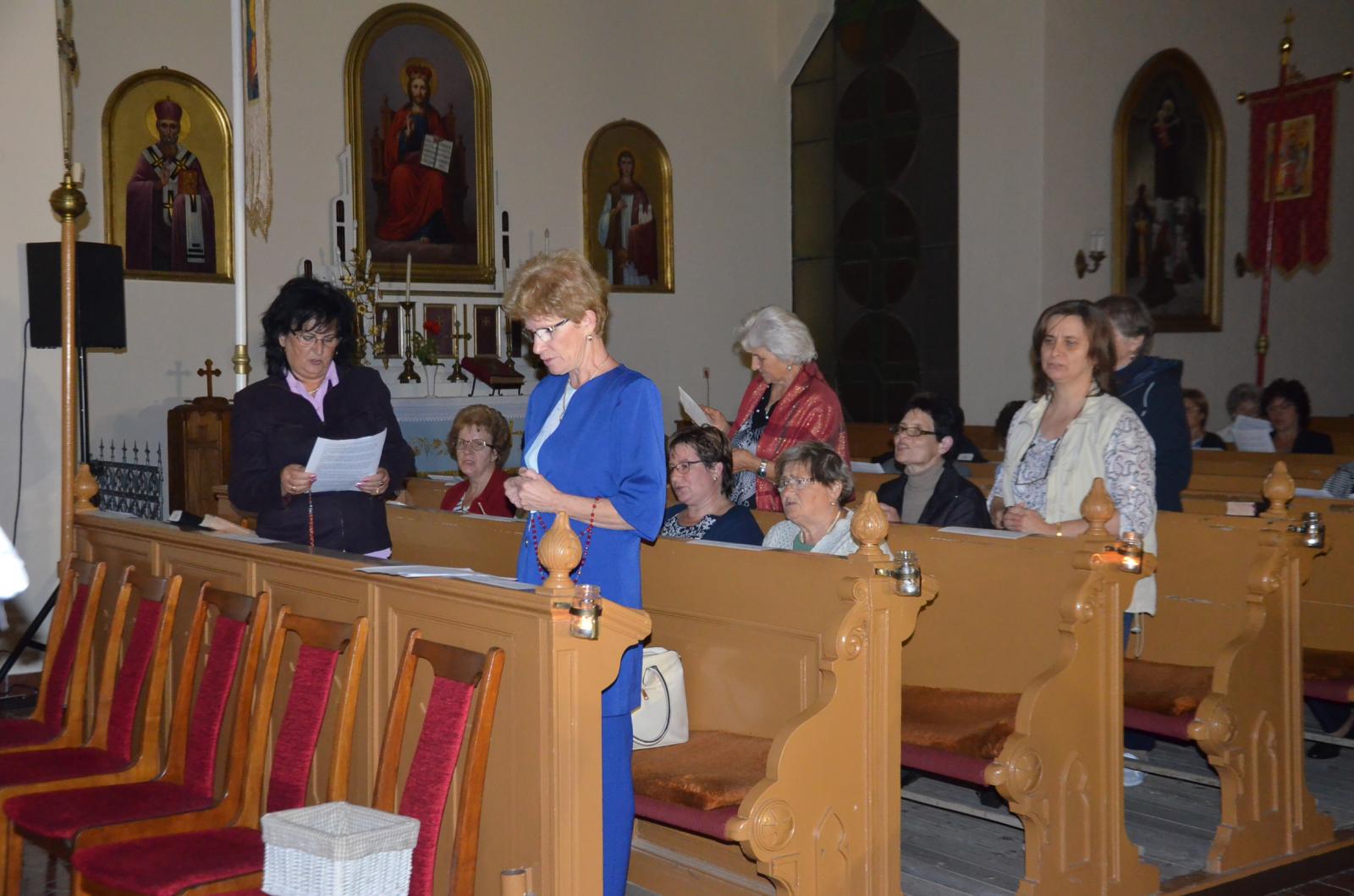 A Böszörményi Rózsafüzér Társulat az estét imádsággal ölelte körbe, ahol közel 40 fő mondta, Debreceniné Erdős Ibolya vezetésével, a katolikus hívek legelterjedtebb imáját. És hogy miért volt érdemes nemcsak ezen az estén, de életünk minden alkalmával mondani a Rózsafüzért? Erre kerestük a választ. Az ima megerősít, lelki köldökzsinórként állandó kapcsolatot feltételez az imádkozó és Jézus Krisztus, valamint Szűz Mária között. A hosszú évekre visszanyúló állandó imajelenlét pedig egyházközségünkben azt eredményezte, hogy mára már három pap és egy szerzetes nővér került ki városunkból és lát el szolgálatot.