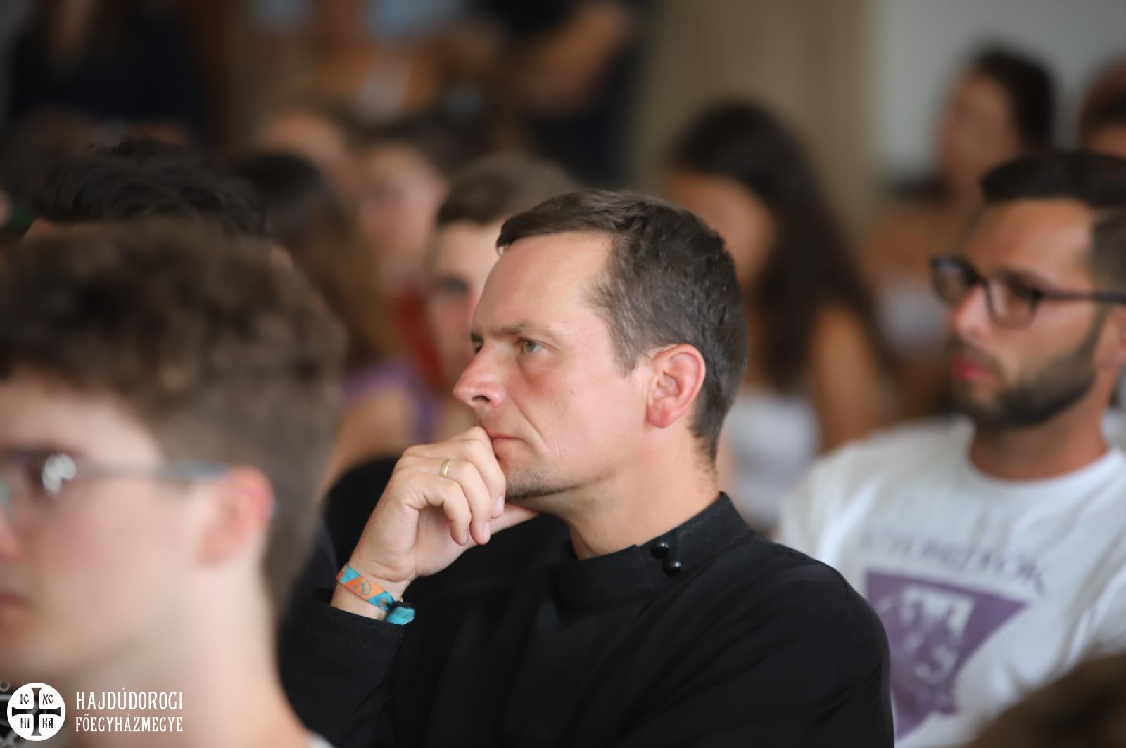 A délután imaórával folytatódott, majd Fülöp atya tartott elmélkedést a fiataloknak. Buzdította őket, hogy ne ijedjenek meg az előttünk álló nehézségektől. Jézus Krisztust idézve azt mondta: ne ijedjünk meg se a háborútól, se a járványtól, se a gazdasági válságtól. (Mk 13,7) Nagyszüleink is átvészeltek nem egy, de két világháborút, idegen megszállást, járványokat, forradalmat, és mégis itt vagyunk.