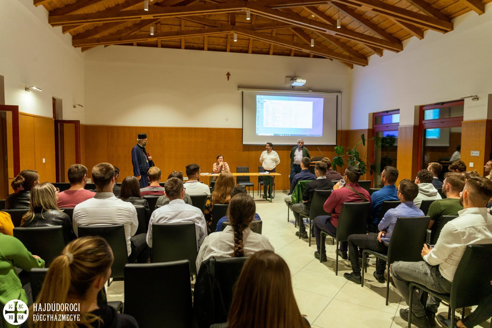 A tanévnyitó a közösségi házban folytatódott, ahol hasznos tudnivalókat osztott meg a fiatalokkal a diákotthon új igazgatója Mező-Halász Krisztina és lelki igazgatója Kapin István atya.