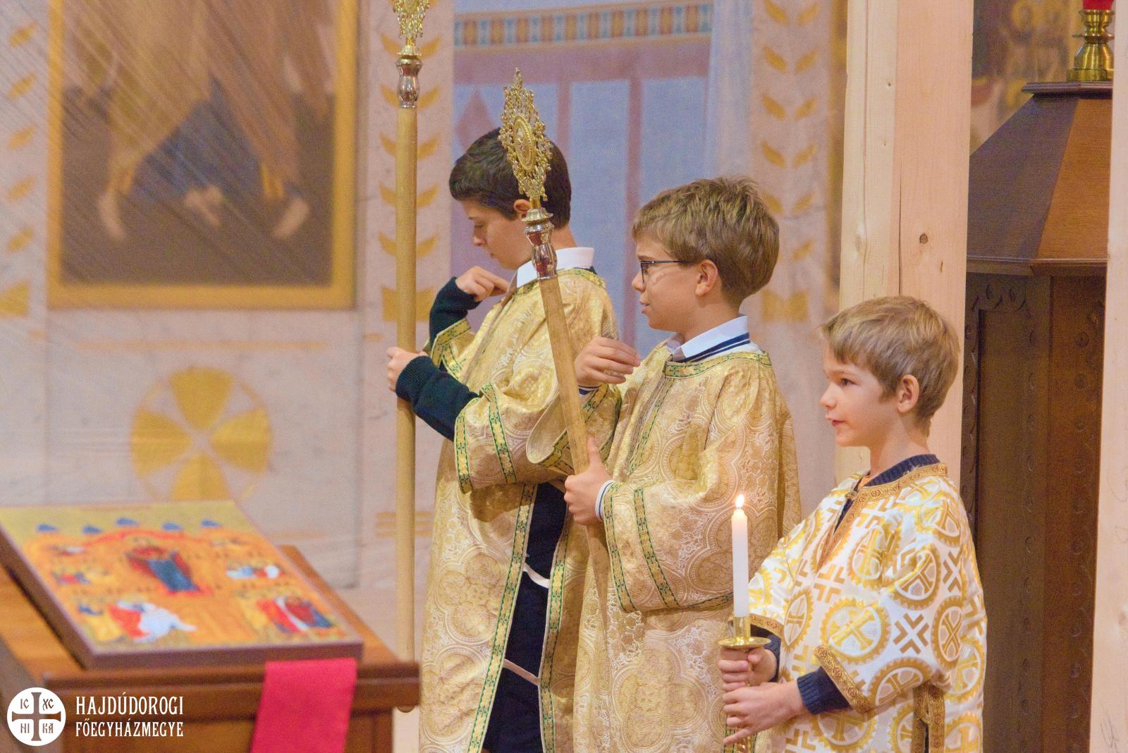 László atya prédikációjában az ünnep történelmi hátterét idézte fel. „Az Istenszülő Szűz Mária évszázadokon keresztül a keresztény nép segítője volt”, és ez az oltalom soha nem fog véget érni. Mivel a főszékesegyházban még tartanak a felújítási munkálatok, az oltárt és az ikonosztáziont védőfóliával vonták be. Ahogy a nejlon alól felsejlenek a címünnep ikonjának körvonalai, úgy Szűz Mária oltalma akkor is velünk van, ha épp nem is rajzolódik ki olyan tisztán.