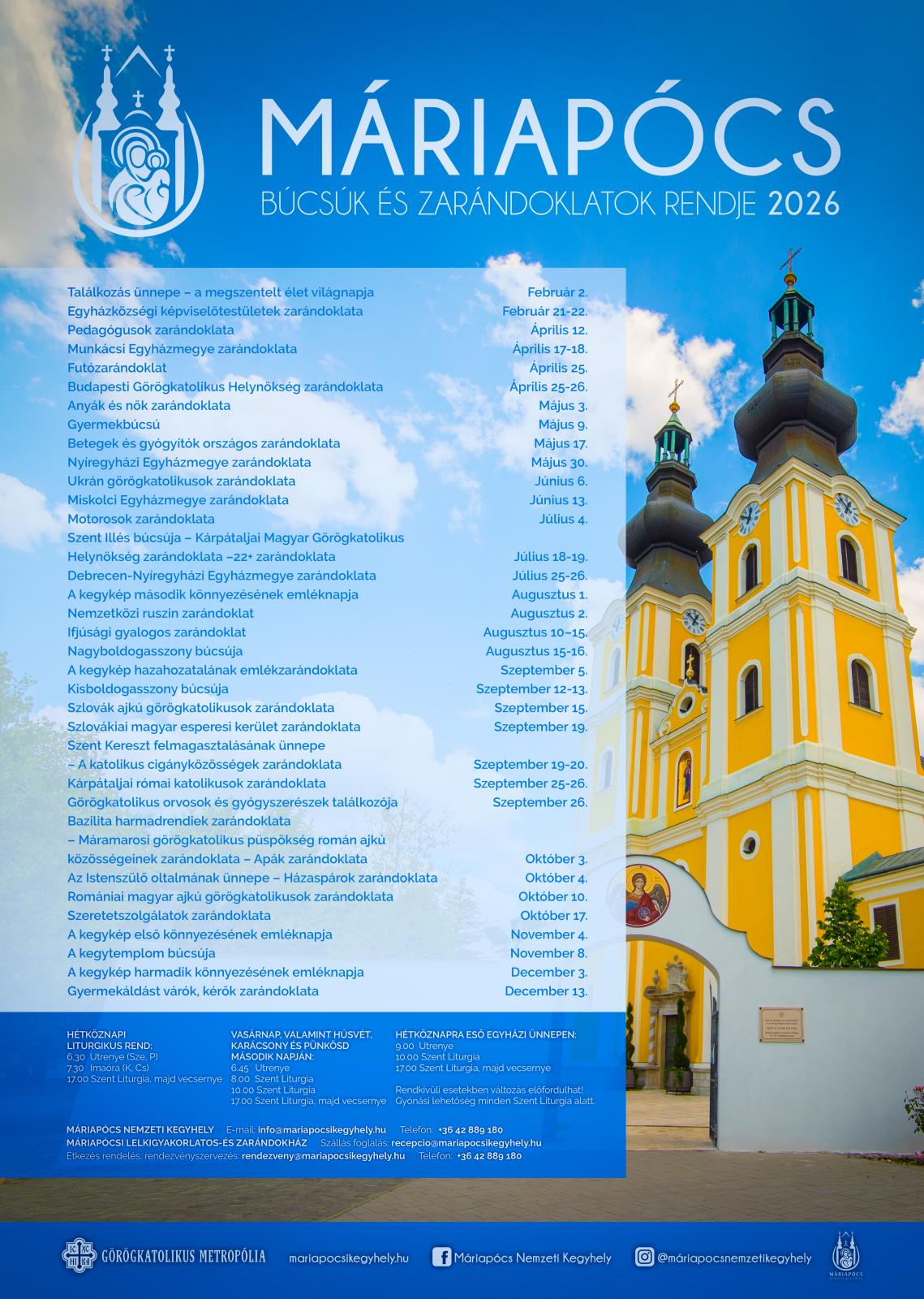 Az alábbi plakáton megtalálják a 2026-os búcsúk és zarándoklatok időpontját.