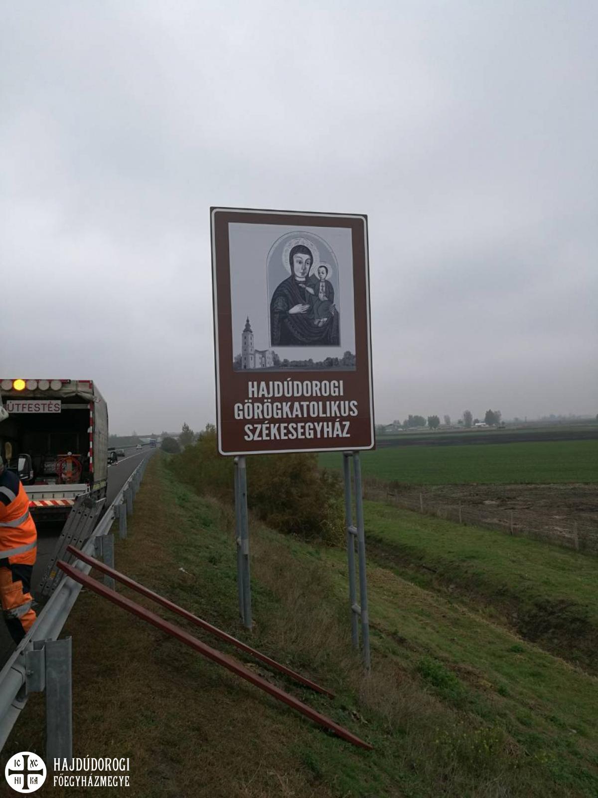 Mindnyájunk számára emlékezetes esemény volt 2009-ben, amikor a Máriapócsi kegyképet gyalogos zarándoklattal februárban Hajdúdorogra hoztuk, majd szeptemberben Máriapócsra vittük vissza. Ebben az évben helyezte el egyházunk az M3-as autópályán azt a táblát, amely a Máriapócsi kegyképpel hívja fel a figyelmet Hajdúdorog közelségére. Ez a tábla most megújult. Az Istenszülő ikonját láthatják rajta az arra utazók a hajdúdorogi székesegyházunk képével együtt.