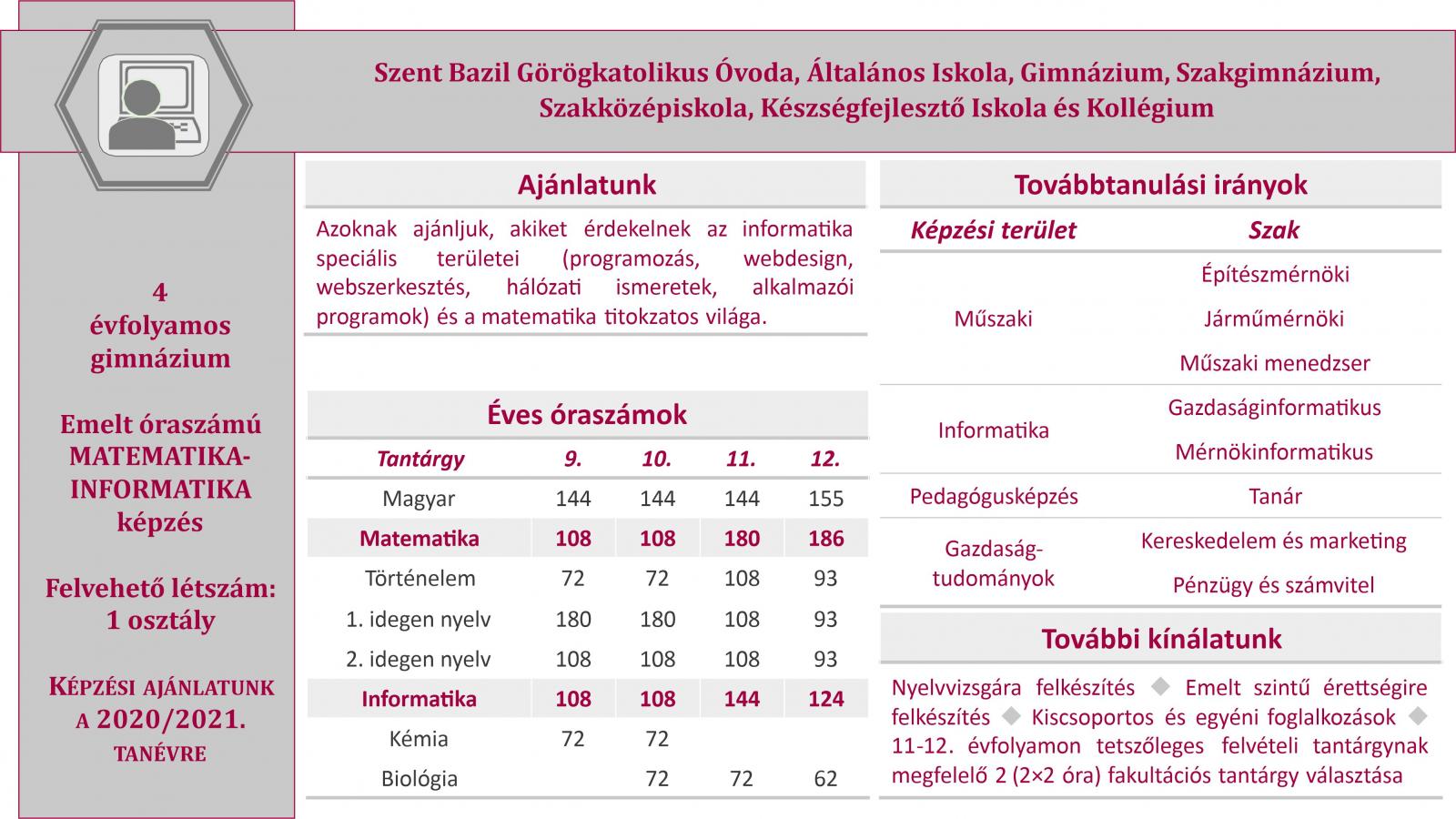 Azoknak ajánljuk, akiket érdekelnek az informatika speciális területei (programozás, webdesign és -szerkesztés, hálózati ismeretek, alkalmazói programok) és a matematika titokzatos világa.