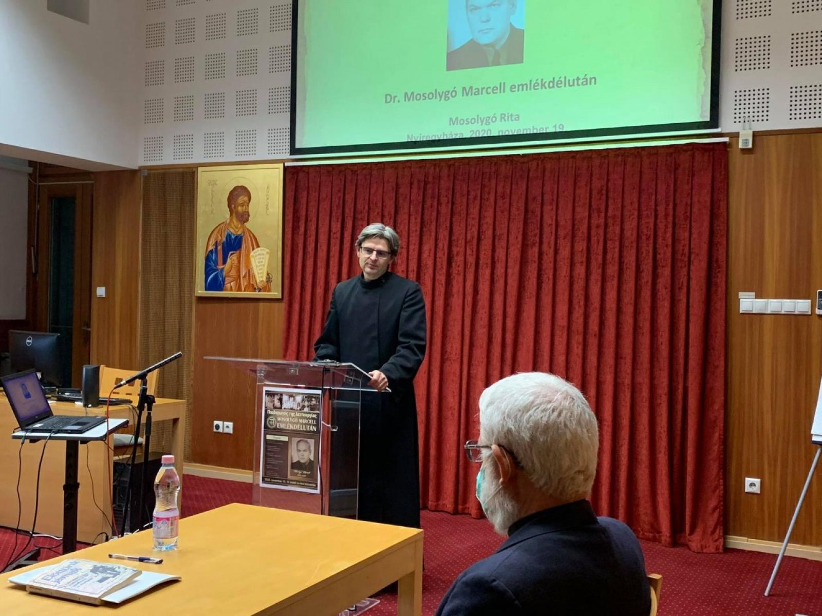 Ugyancsak személyes hangvétel szőtte át Marci atya egyetlen fiának, ifj. dr. Mosolygó Marcellnek az előadását, aki a fiatal papot, a máriapócsi, káplánt mutatta be nekünk. Mily nagy szerencse, hogy Marci atyának fennmaradt egy önéletrajzi írása! Egy gyűjteményes kötetben egy-egy fejezetet szentelt életútja egyes állomásainak.3 A fia is elsősorban ezt vette alapul a munkájához. Már a pócsi évei alatt megmutatkozott a fiatal papnak a liturgia iránti szeretete, amit aztán tanítania kellett. Ugyanakkor – ami szorosan kötődik a liturgiához – a hitoktatásban végzett olykor heroikus munkájáról is képet kaphattunk. Köszönjük.