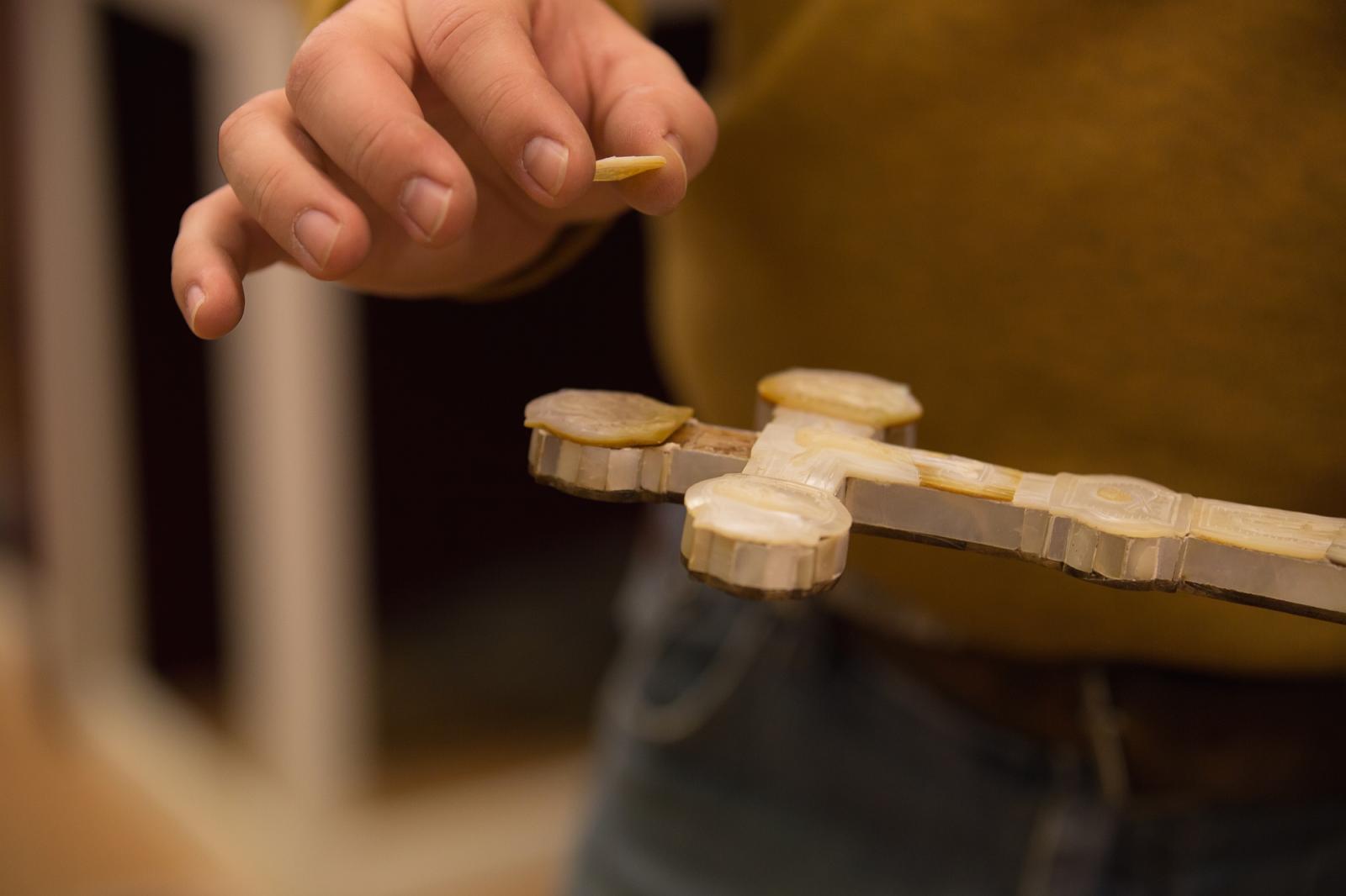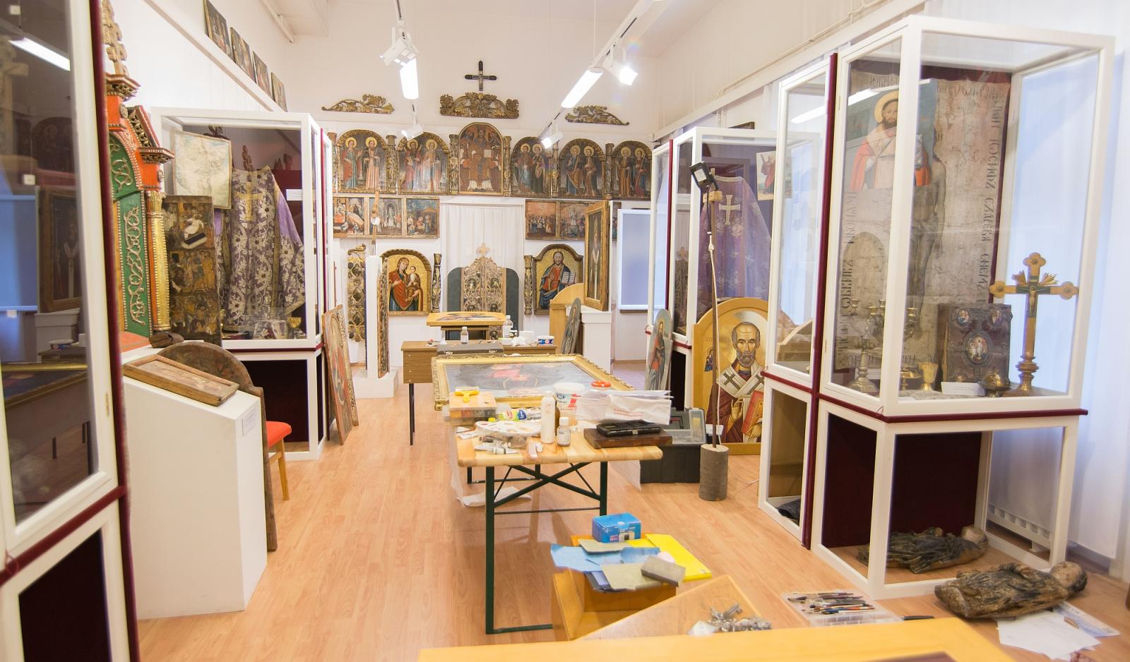 A február végén restaurált tárgyakról elmondta a művész, hogy van köztük például egy talpas kereszt, melynek gyöngyházdíszítése lehullott, mivel a ragasztáshoz használt enyv kiszáradt, rideggé vált. A tárgyak többsége azonban ikon, barokk festmény, vagy még későbbi főpapi portré, amelyeken a laikus szemnek szinte észrevehetetlen hibákat mind kezelni kellett.