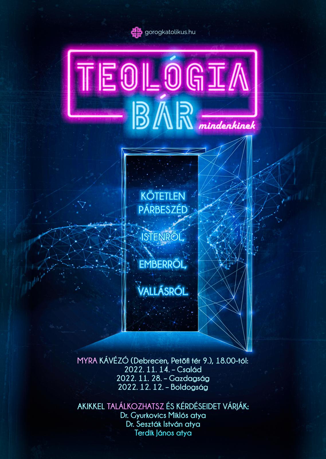 A Teológia Bár elsőként tehát a családról szólt, legközelebb pedig a gazdagságról, közvetlenül karácsony előtt pedig a boldogságról mondják el gondolataikat a meghívott előadók. Fontos, hogy ezek az alkalmak biblikusak legyenek, ezért jó, ha előtte (is) forgatják a Szentírást a találkozó iránt érdeklődők, és akár kérdéseket kigondolva lépnek be a „bárba”.