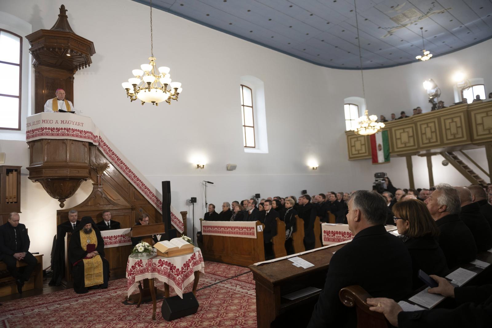 Majd dr. Fabiny Tamás, a Magyarországi Evangélikus Egyház püspöke mondott áldást kérő imát, melynek minden sorát a Himnusztól kölcsönözte, a vershez igazítva formálta: – Szánd meg Isten a magyart, ki kínja tengerén keresi a helyét Európában és a világban. Szánd meg Isten a magyart, hogy ne csaljon adót a gazdag és ne kényszerüljön lopni a szegény. Szánd meg, hogy mindig visszataláljunk Szatmárcsekére, és emeld fel Isten ezt a nemzetet – fohászkodott mindannyiunk üdvéért.