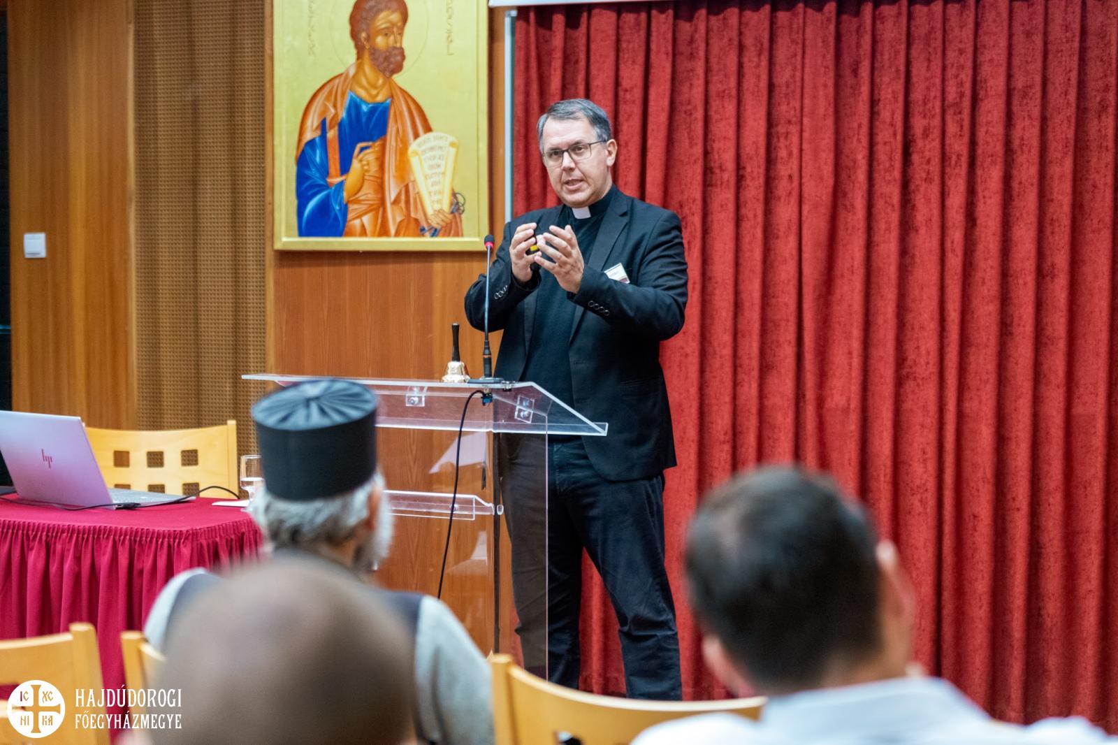 A nemzetközileg elismert magyar, olasz, ukrán, cseh, ír és horvát patrológusok, dogmatörténészek, teológusok és filozófusok részvételével megrendezett háromnapos tudományos tanácskozást Fülöp metropolita nyitotta meg, majd a Pápai Keleti Intézet Egyházi Tanulmányok karának dékánja, Željko Paša vont összefüggést az első egyetemes-, a második vatikáni zsinat, valamint a mai kor között.