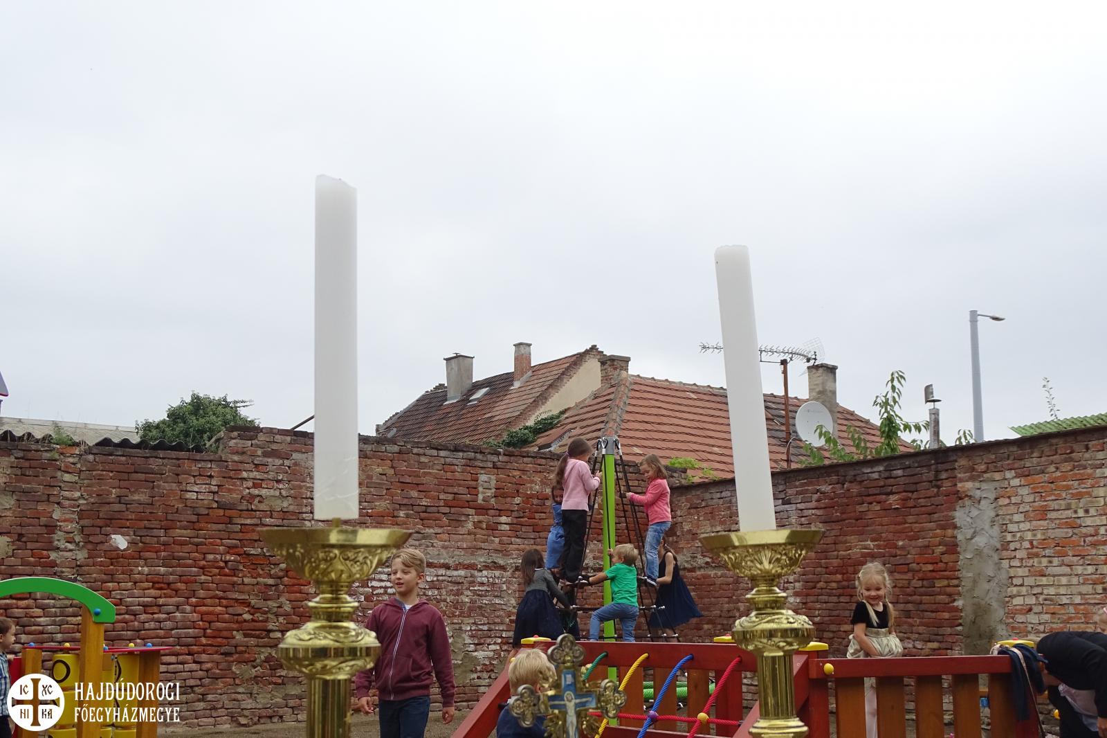 A Liturgia végén a gyermekek és pedagógusok tanévkezdő áldásban részesültek. Majd közösen átvonultak a szomszédes telekre, ahol a metropolita megáldotta az újonnan elkészült játszóteret.