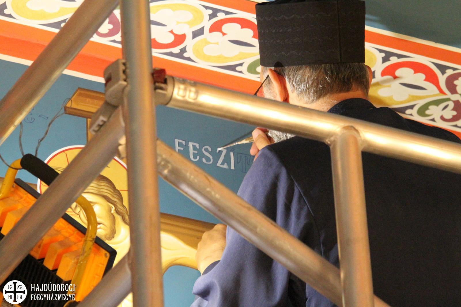 – Ez az elnevezés fontos része az ikonnak, sőt, azt mondja az ikonográfiai előírás, hogy akkor készül el az ikon, amikor a szöveg a név fölkerül rá. És ez egy ősi hagyomány, hogy ezt a püspök teszi meg – mondta a főpásztor. A hagyomány szerint a püspök az ikonokat hitelesíti, véglegesíti majd saját keze munkájával megszenteli azt.