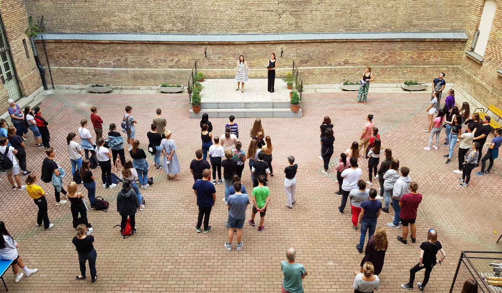 A járványügyi szabályok teljes megtartása mellett, az iskola udvarán hallgathatták meg Rákosi Eszter fuvola művész és Majercsik Júlia énekes előadását.
