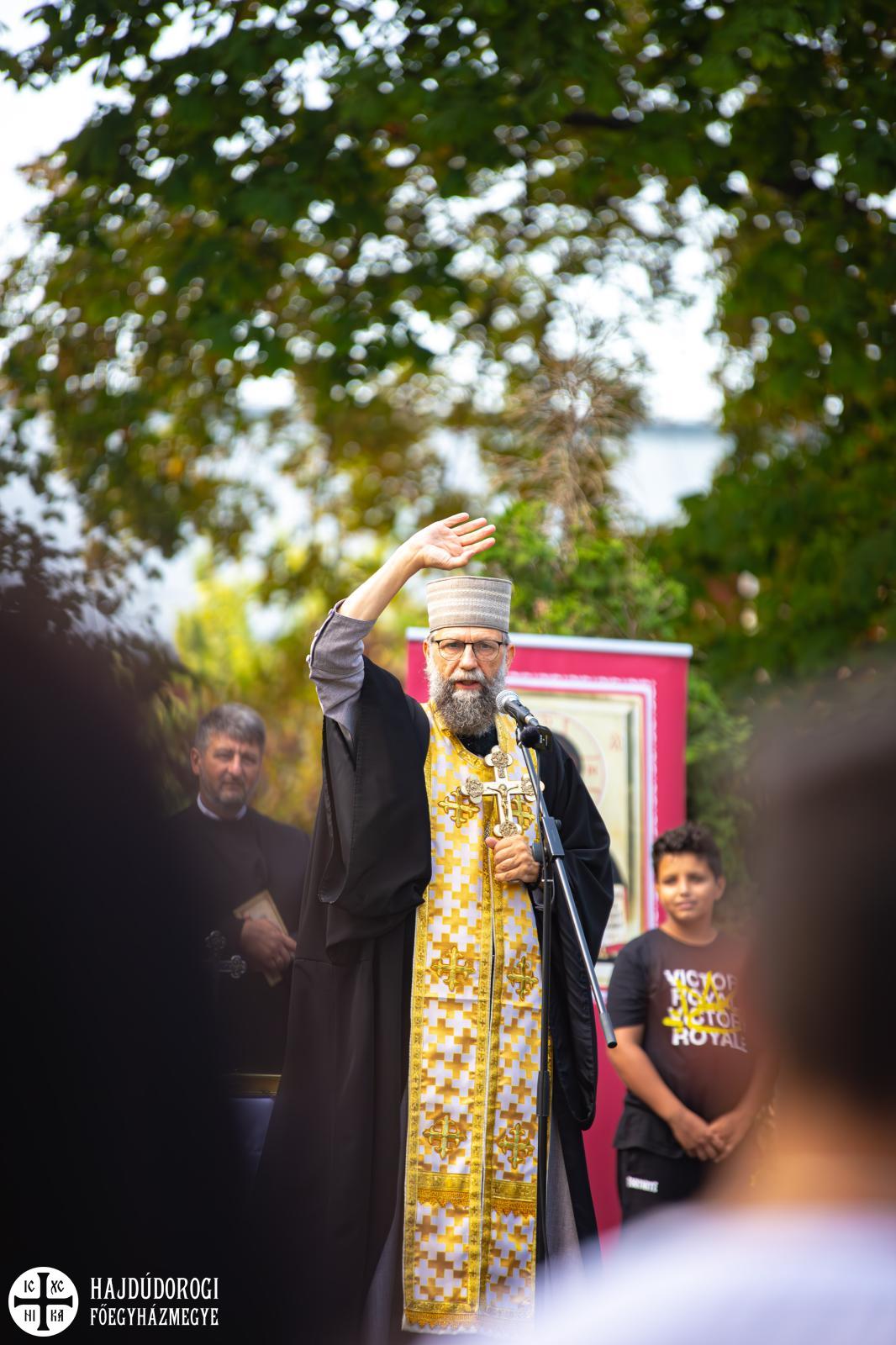 A hajdúdorogi székesegyház templomkertje már kora reggel vidám gyerekkacajtól volt hangos. A közös ima után Kocsis Fülöp metropolita furfangos módon igyekezett bevonni a kissé zárkózott gyerekeket a közös gondolkodásba.
