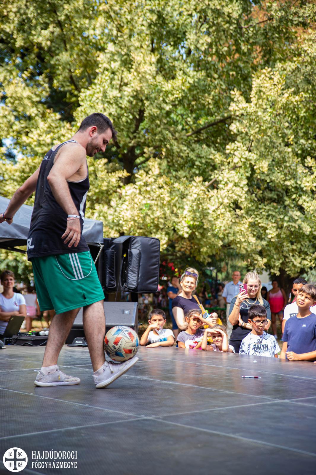 A vidám indítás után kézműves foglalkozások, katonai-, mazsorett-, solymász- és kutyás bemutató, hajfonás, óriás csúszda, játszóház, gumiköteles ugráló és megannyi szórakoztató elem tette feledhetetlenné a napot. Fellépett a Burattínó Bábszínház, emellett vendégünk volt hajdúdorogi származású Szabados Ádám freestyle focista is, aki egész délelőtt trükköket tanított a fiataloknak, amiket aztán a színpadon is bemutathattak.