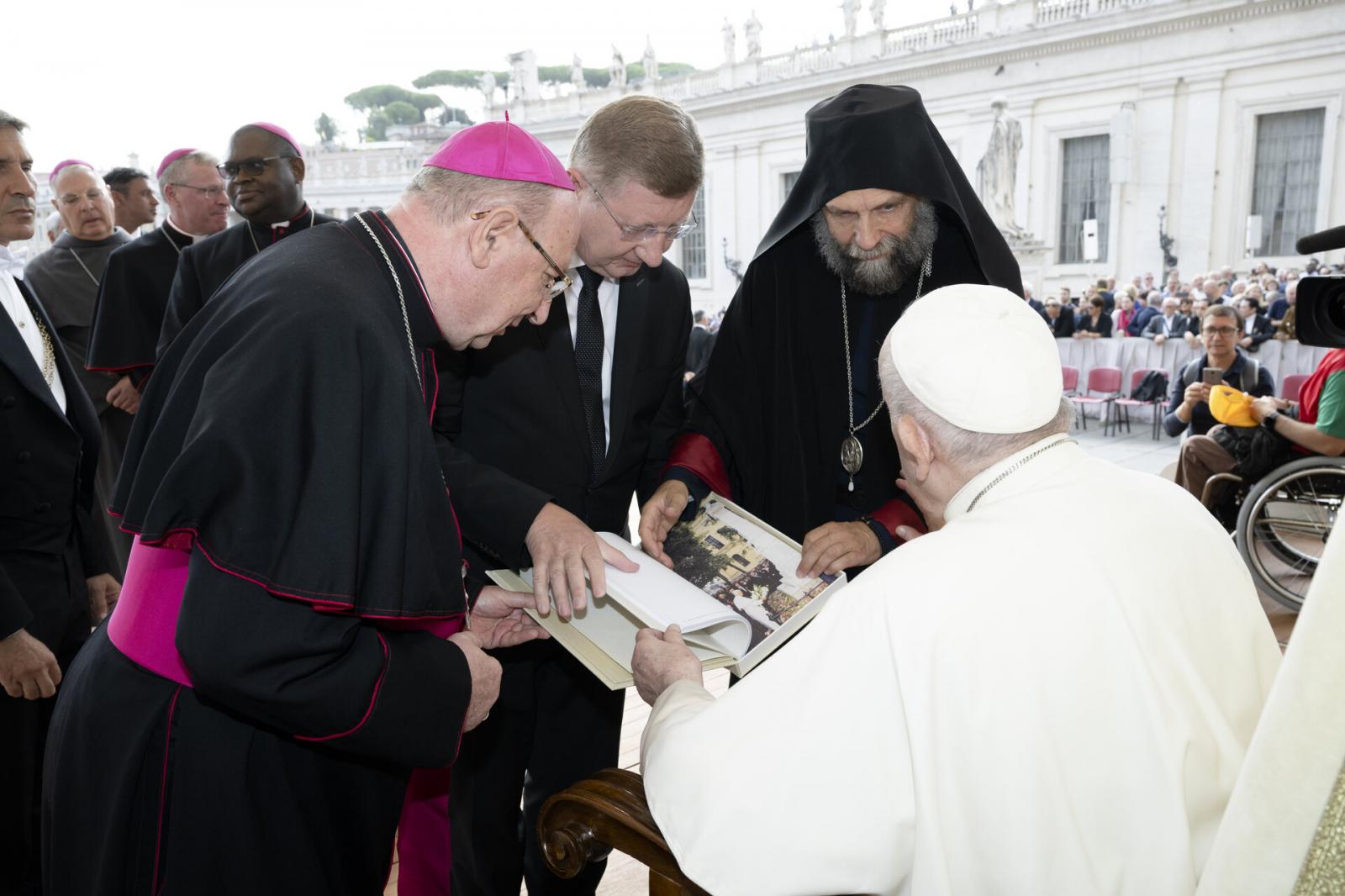 A pápa örömmel fogadta az ajándékot, magyarul is köszöntve a püspököket és a rövid beszélgetés során megerősítette szándékát, hogy hamarosan ismét Magyarországra kíván látogatni.