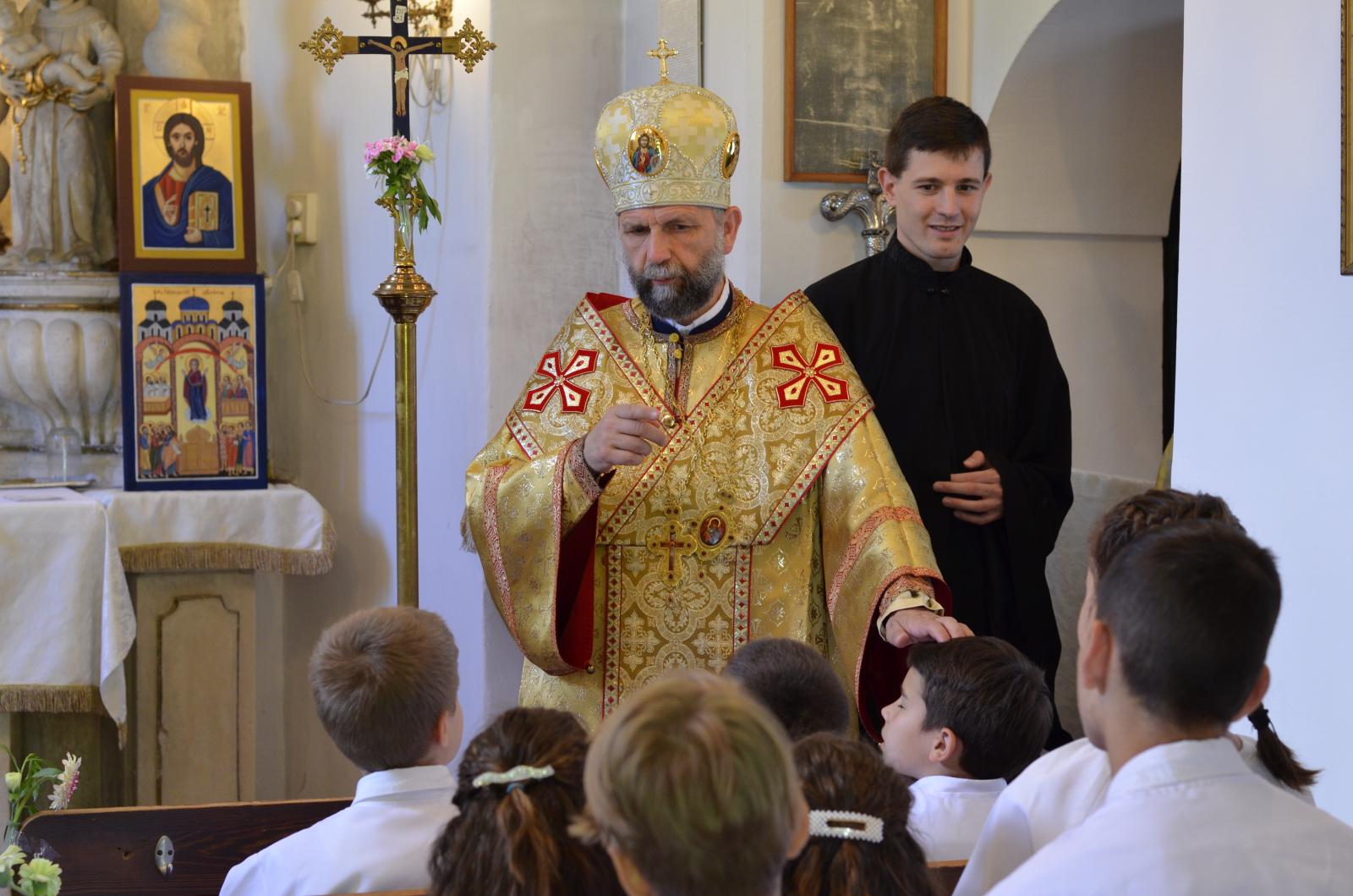 A Szent Liturgia végén a gyerekek verset mondtak és köszöntötték a szülőket, vendégeket. A főpásztort Nagy Rita Éva köszöntötte a szülők nevében.