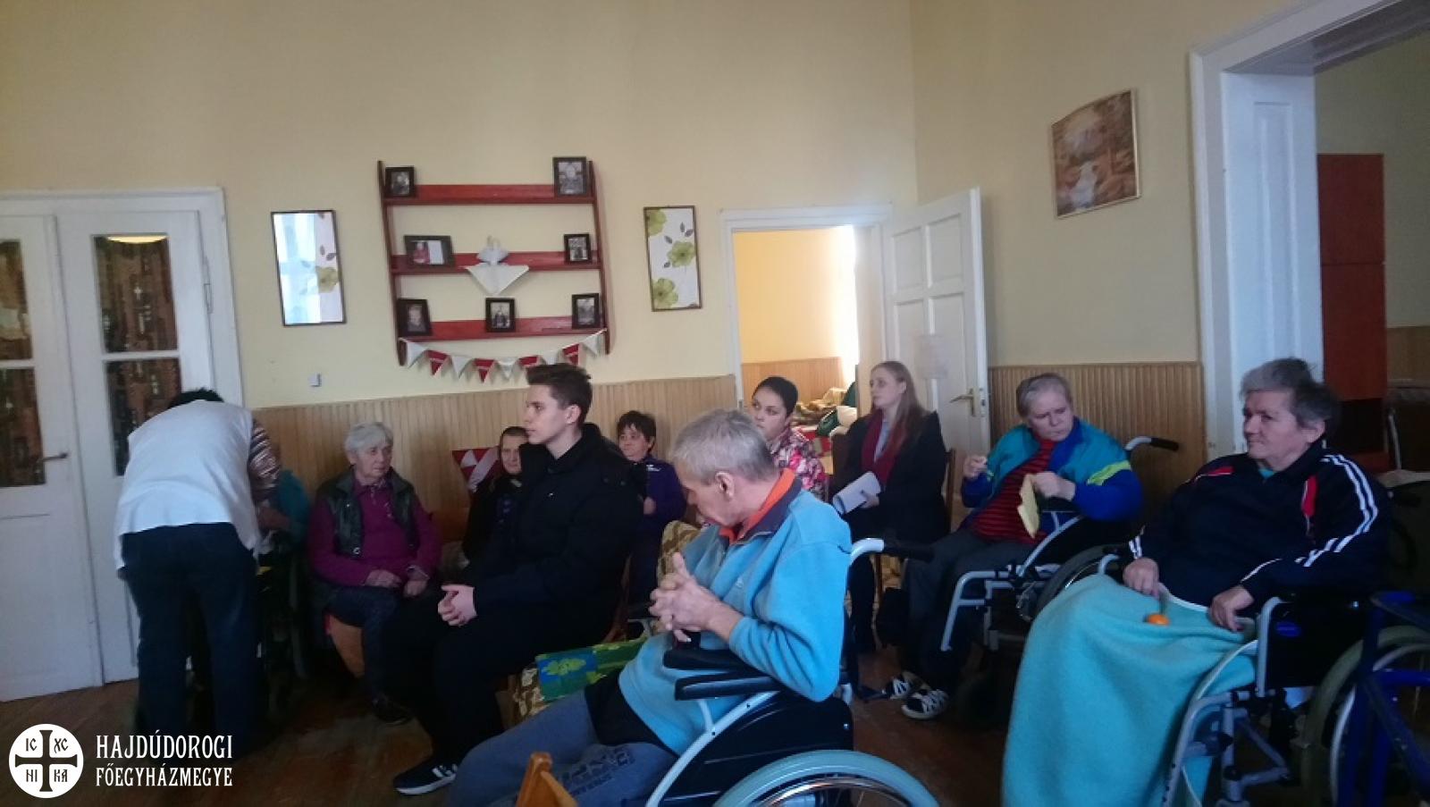 A nyíracsádi fiatalok 2017. november 25-én szombat délután meglátogatták a helyi idősek otthonát „Az örömhír délután” keretében. Céljuk az volt, hogy a karácsonyi készület idején a lelkes fiatalok közössége találkozzon azokkal az idősebb és sokszor a betegség keresztjét hordozó embertársaikkal, akik dolgos és imádságos életükkel lehetővé tették a jelen örömét.
