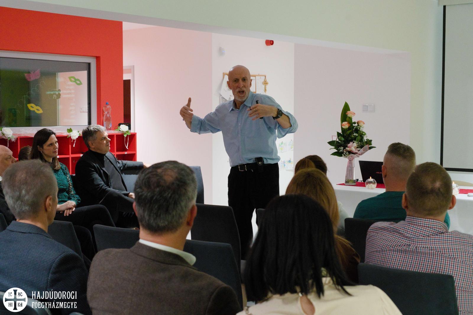 Az előadás végén Terdik János pasztorális helynök és Rása Marianna, a bölcsődehálózat vezetője mondott köszönetet az értékes gondolatokért.