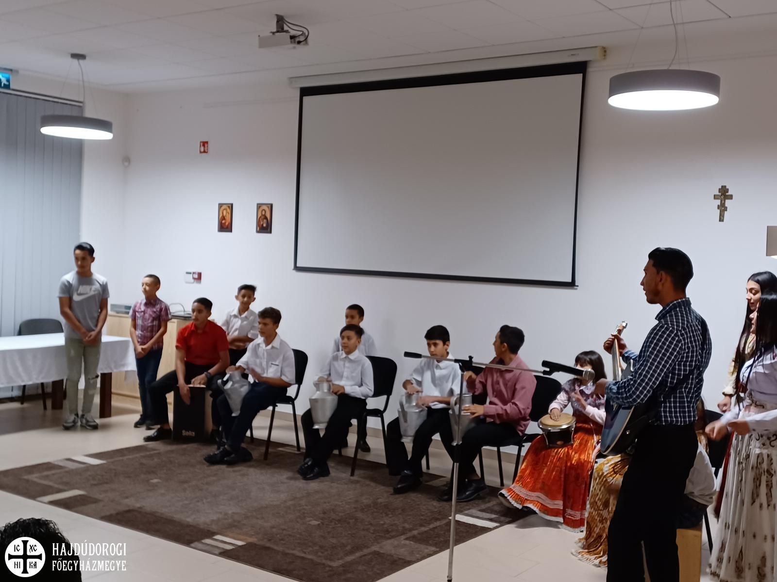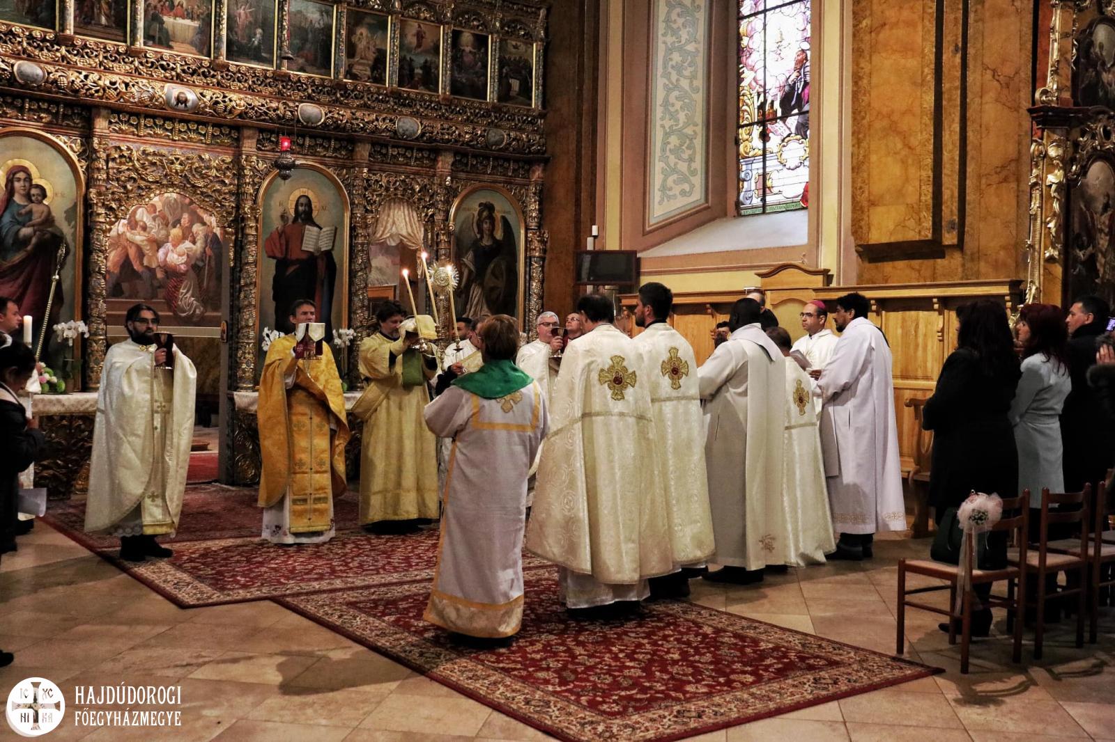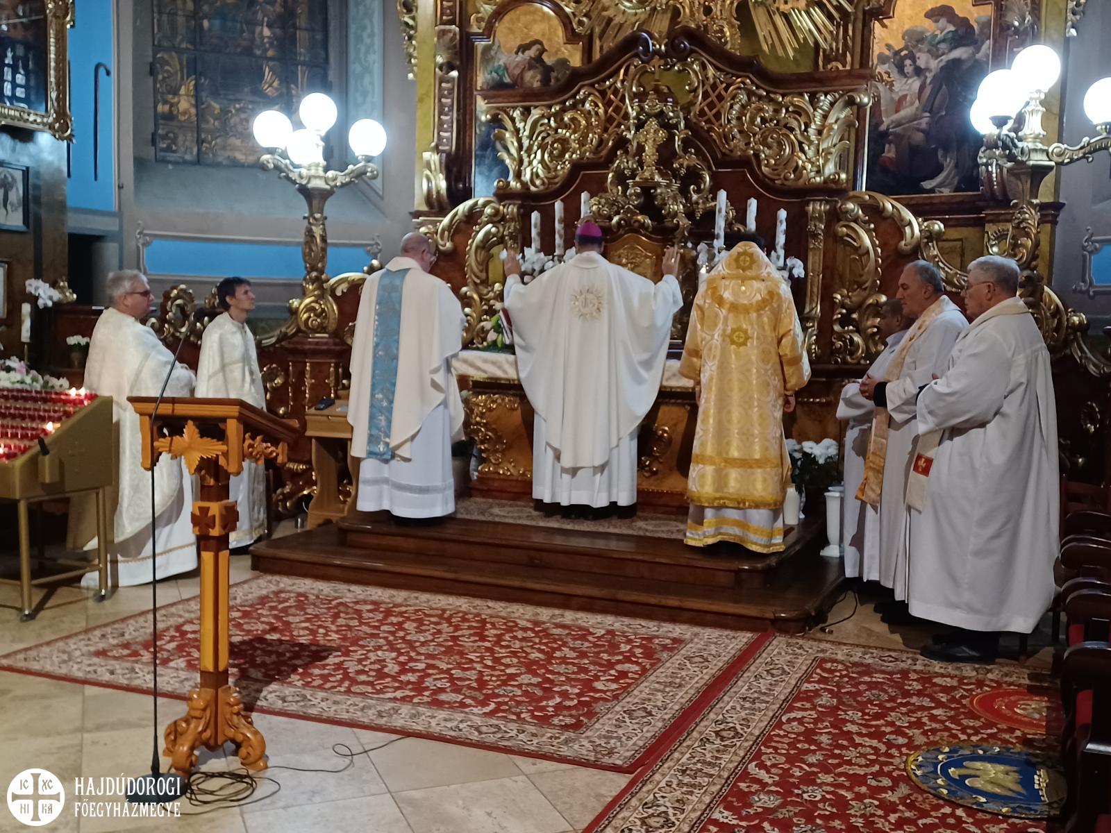 Ezt követően görögkatolikus Szent Liturgiát végeztek a konferencián résztvevő görög- és római katolikus atyák a bazilikában, melyen cerhári és magyar nyelven csendültek fel imádságaink a hodászi cigány egyházközség tagjainak kántorizálása mellett, akiket Lakatos Péter görögkatolikus atya, országos cigánypasztorációs referens kísért gitárral.