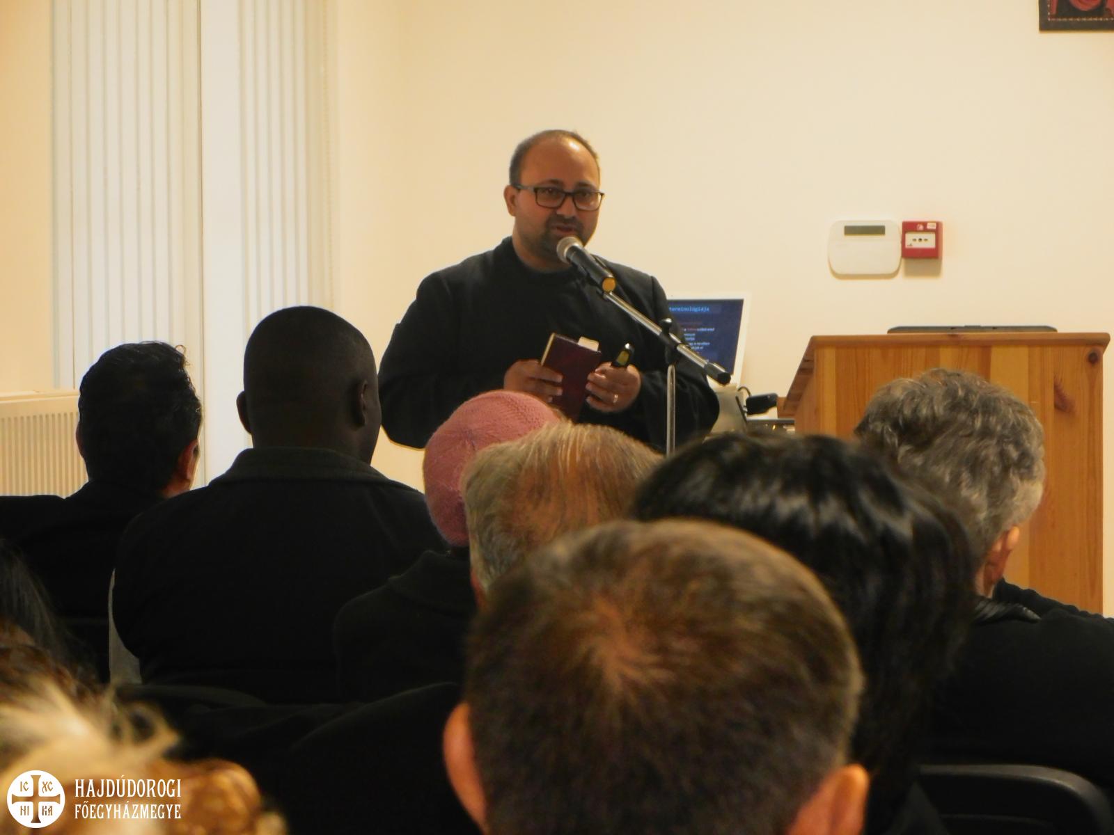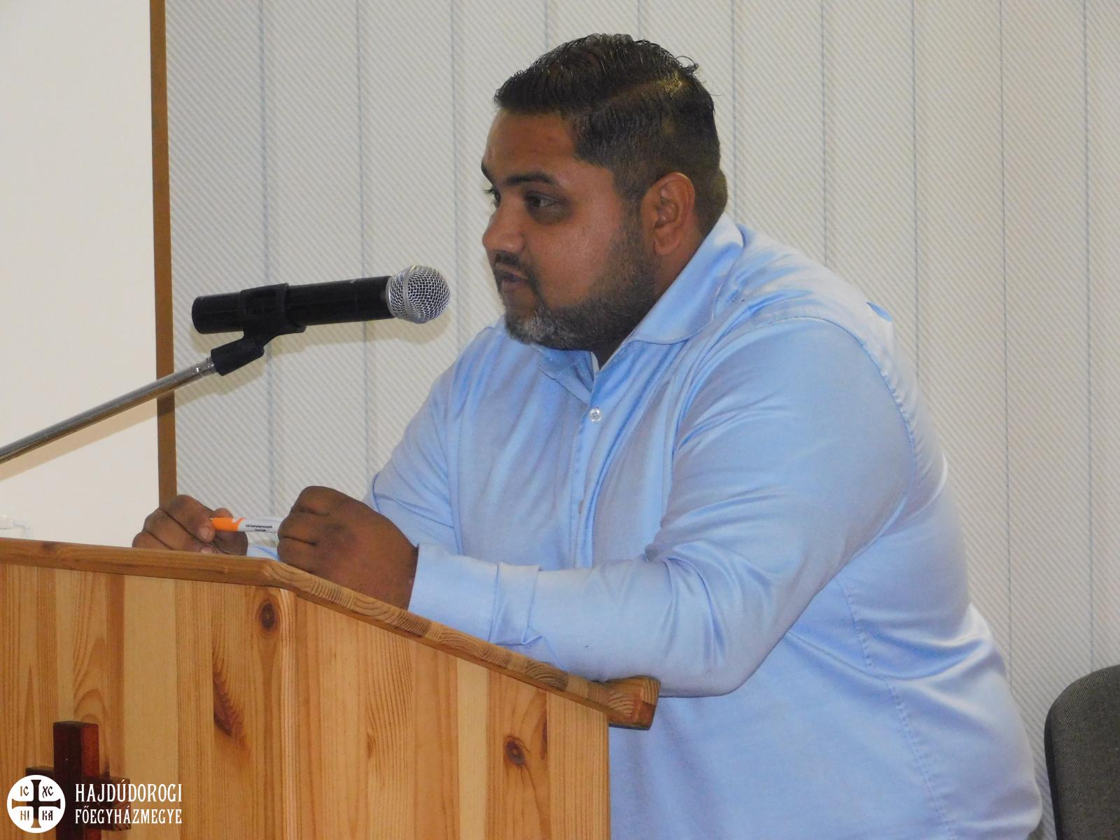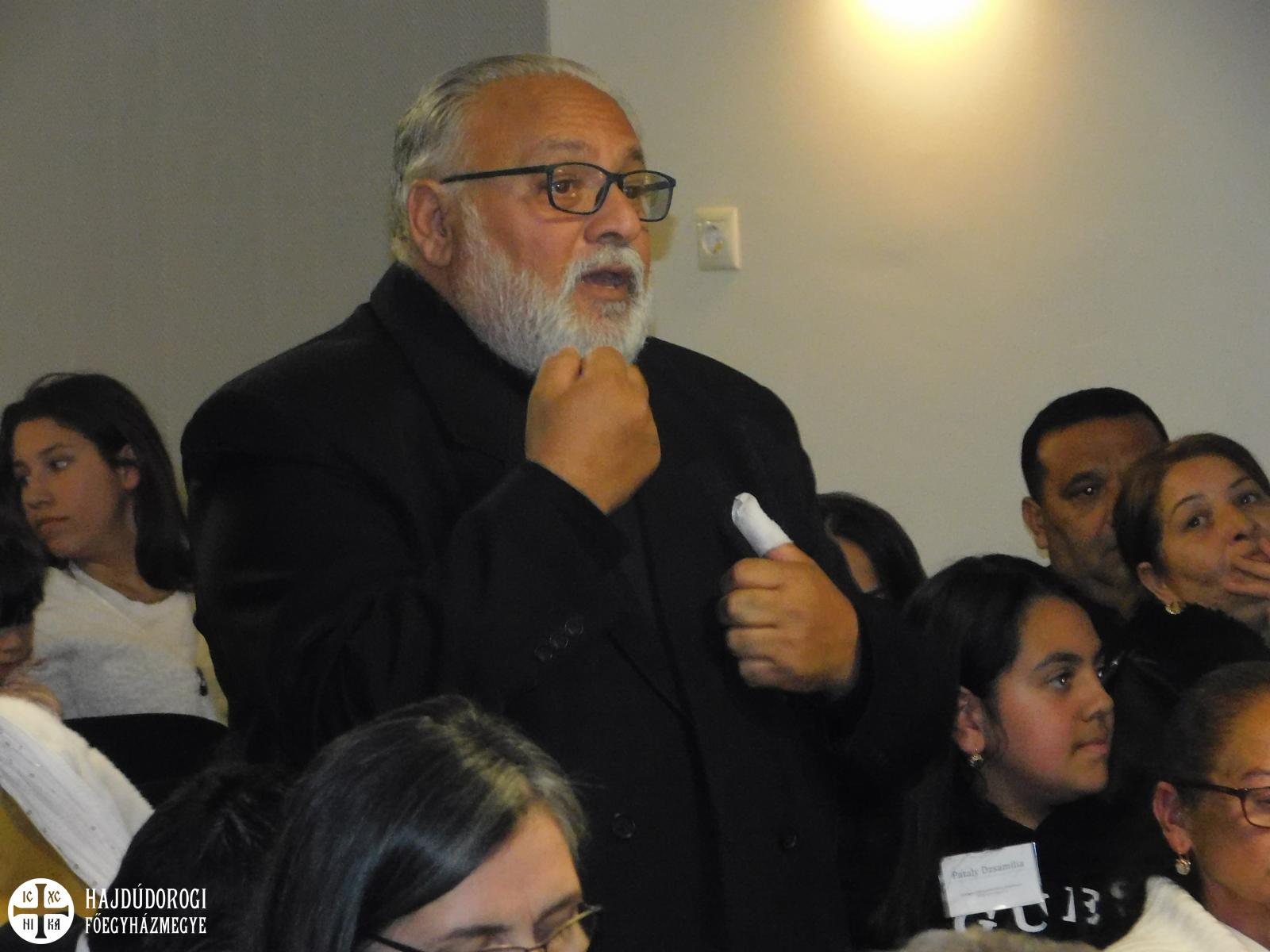 Ebéd után ifj. Nagy Zoltán egyházmegyei cigánypasztorációs megbízott adott betekintést a Nyíregyházi Egyházmegye cigánypasztorációs tevékenységéről, melyről azt mondta: a hivatástudatra épül, ez nemcsak munkahely, hanem elkötelezettség. A görögkatolikus papképzés fontos részévé vált a kispapok bevonása a cigánypasztorációba: rendszeresen látogatják a cigány közösségeket, tanodákat, családokat – mert szolgálatuk során szinte biztos, hogy találkozni fognak cigányokkal. Mindhárom görögkatolikus egyházmegyében aktív a tanoda-rendszer, ahol iskola után foglalkoznak a gyerekekkel, segítik, fejlesztik őket, sok helyen fürdeni, mosni is tudnak, és bátorítják őket a cigány kultúra gyakorlására, továbbadására. Fontosnak tartják a kis közösségek találkozóit, hogy egymástól is tanulhassanak. A fiatalokra fektetik a legnagyobb hangsúlyt, mert ők a jövő pasztorációs generációja, belőlük jó keresztényeket és jó vezetőket szeretnének nevelni, akik az egyház tanítása mellett tovább tudják gondolni a saját közösségük jövőjét. Legfőbb alapelveink tehát az ifjúság hitének megerősítése, bevonásuk az egyház vérkeringésébe; rítusunk és hagyományaink ápolása, a peremen élők evangelizálása, zárt közöségeink nyitottá tétele mindenki felé. Hiszen Jézus Krisztus azt mondta: „Szeressétek egymást, ahogyan én szerettelek titeket!”