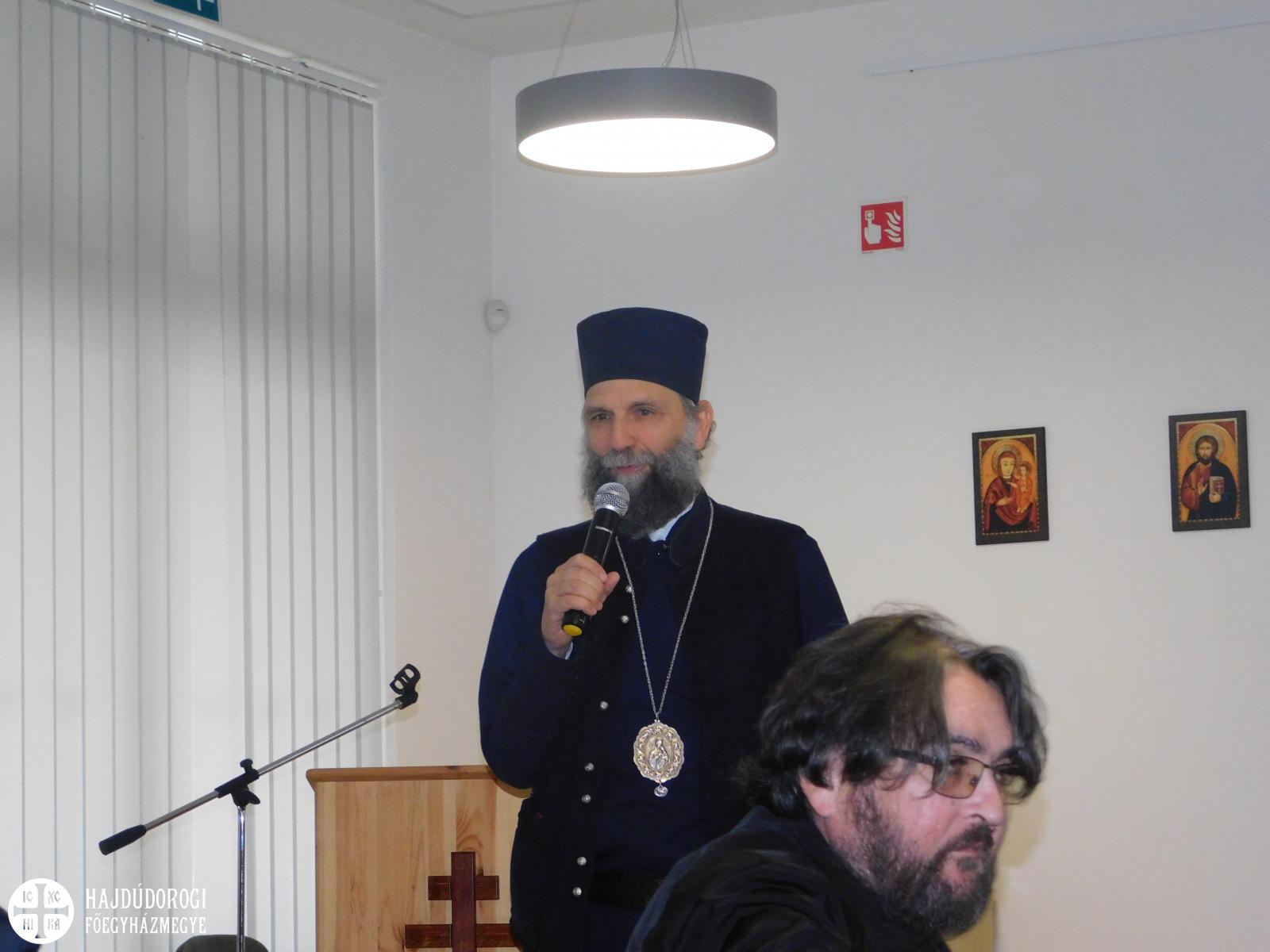 Ezt követően Fülöp metropolita tartott interaktív előadást arról, hogyan jelenik meg a megújulás a bizánci liturgikus szövegekben. Az emberi megújulás a Krisztusba való öltözködés, a megtérés, a bűnbánat, Isten kegyelméért történő könyörgés által történik meg, mely az isteni megújulás, a feltámadás és megváltás által válik teljessé. Ezek a folyamatok mind tetten érhetők a bizánci liturgikus szövegekben. Az egyes szövegeket nemcsak kivetítőn olvashatta a hallgatóság, hanem közösen énekelték azokat Fülöp atyával.