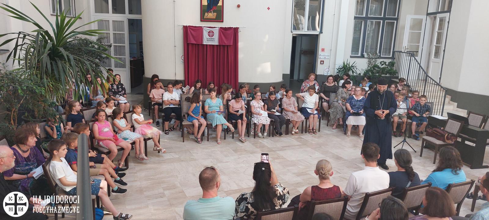 Ha a nyári diáktáborokra gondolunk, akkor első sorban a túrázás, strandolás vagy valamilyen sportoláshoz, kézműves foglalkozás köthető elfoglaltság jut eszünkbe. Kevéssé a tanulás, pedig egy-egy hét erejéig beleférhet, még az év legmelegebb napjaiban is. Főként, ha az olyan szórakoztatóan van megszervezve, mint a Metropólia liturgikusének-tábora. Ötödik alkalommal várták Debrecenbe július 3-7. között az ország minden pontjából azokat a gyermekeket, akik mélyrehatóbban is szerették volna megismerni a görögkatolikus alapdallamokat.