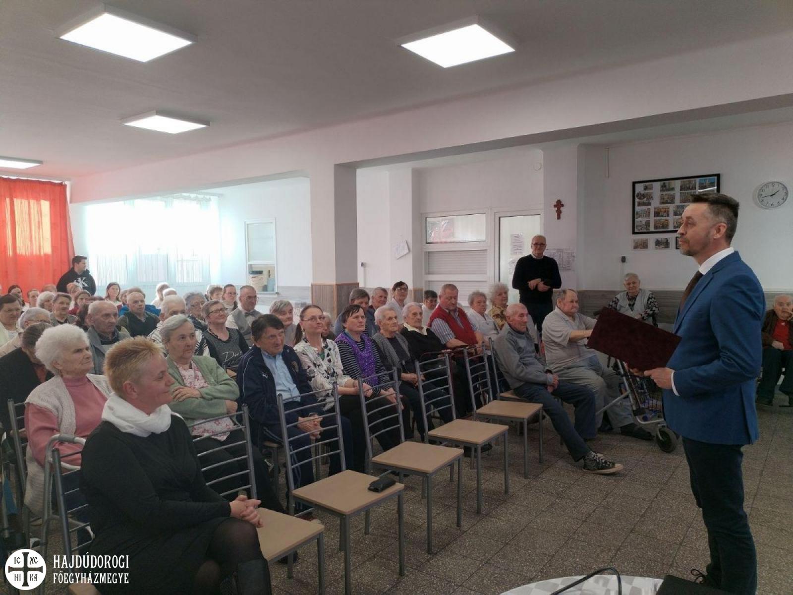 – Mélyről indultunk, de mára azt hiszem, hogy nem csak egy szép, minden igényt kielégítő épületünk van, hanem egy közösségünk – fogalmazott a hajdúszoboszlói Szent Lukács Görögkatolikus Idősek Otthonának ötödik „Szent Lukácsos szülinapján" Ungvári Sándor, a Szeretetszolgálat igazgatója, aki ünnepi megemlékezésének a végén azt is elmondta, hogy ő a lakóktól mindössze imát kér a munkatársak fáradozásaiért cserébe.