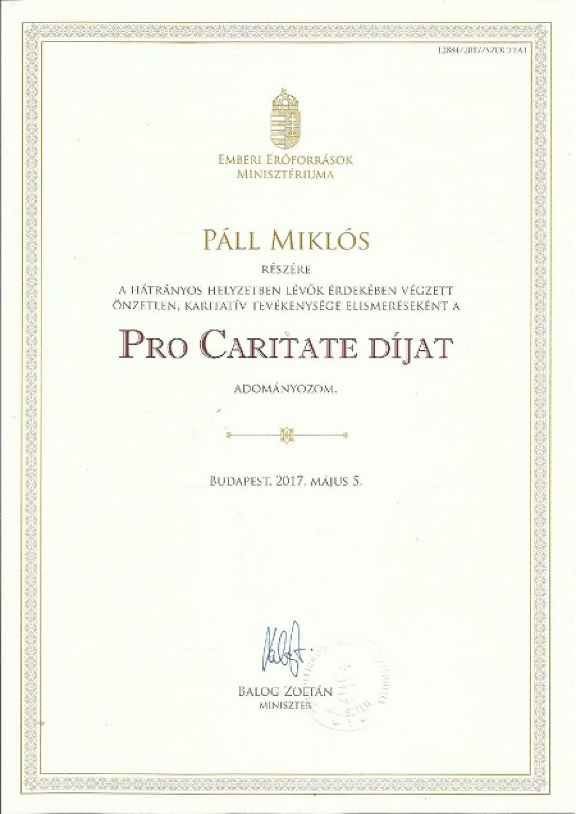 Pro Caritae díjban részesült Páll Miklós atya is, a hátrányos helyzetben lévők érdekében végzett önzetlen karitatív tevékenysége elismeréseként. Miklós atya hét éve tevékenykedik karitászigazgatóként a Miskolci Egyházmegyében, a tolcsvai parókiai szolgálatok mellett.