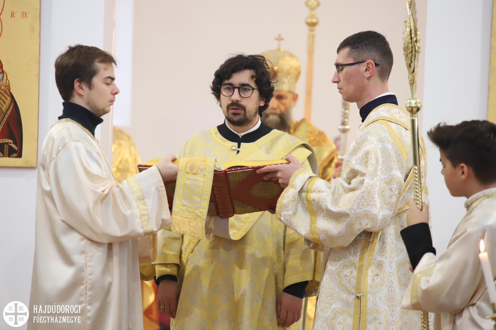 A Szent Liturgia énekei ezen a vasárnapon talán most még szebben csengtek, hiszen ezen a hétvégén tartották a kántorok lelki gyakorlatát Debrecenben. Így ők is részt vettek a szertartáson, ami méltó zárása volt az ő találkozásuknak is. Amint az Evangéliumban hallhattuk: „Testvéreim! Erősödjetek meg az Úrban, az ő hatalmas erejében! Öltsétek magatokra Isten fegyverzetét, hogy megállhassatok az ördög mesterkedéseivel szemben!” Ef 6,10-17