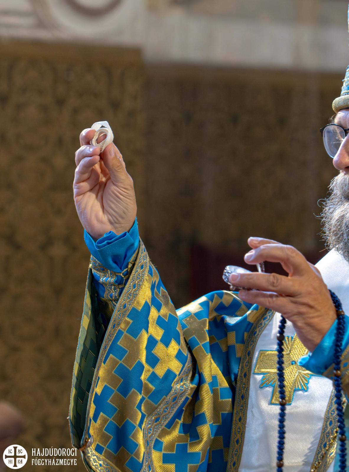 „Athos-hegyről kaptam egy ilyen szalagot, melyet most itt hagyok a dunaföldváriaknak” – emelte ki a metropolita. „Abban bízom, hogy az ereklye és a mai bizánci liturgia minnyájunk lelkét megérinti és megerősít hitünkben, itt Dunaföldváron is.”
