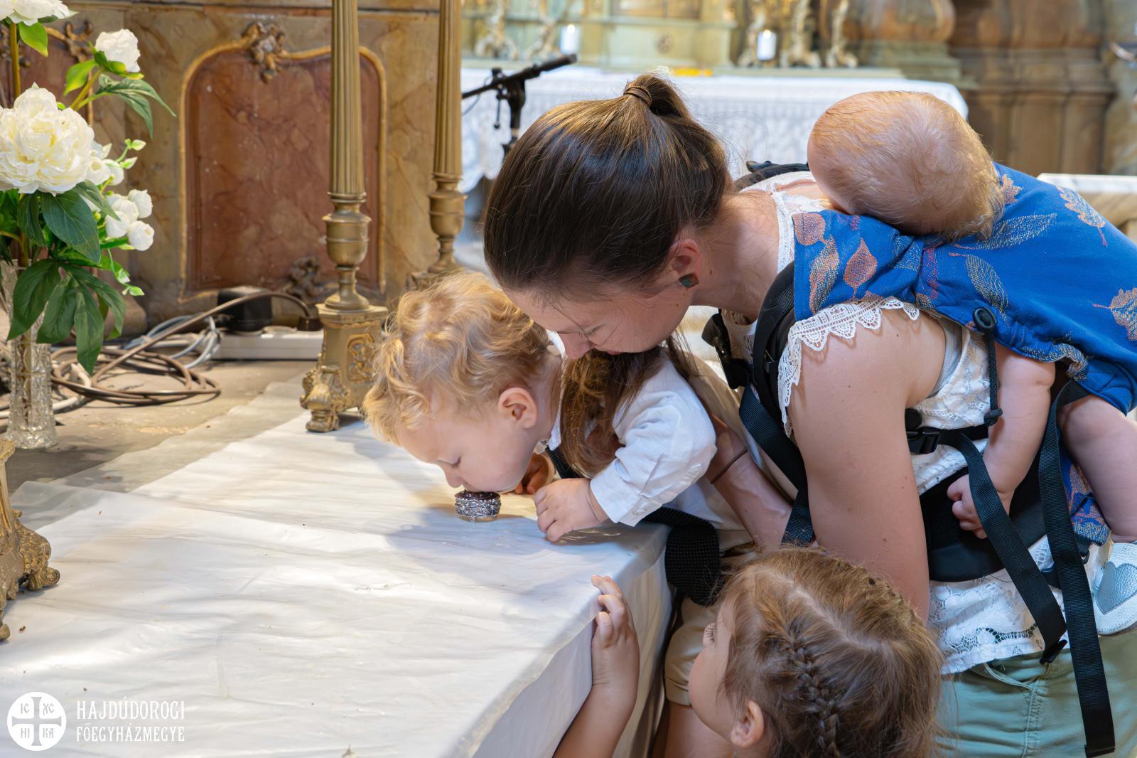 A liturgia végén mindenki részesülhetett a megszentelt kenyérből, majd megcsókolhatták a kis szelencét, amely a szerzetesek által készített szalagot őrzi.