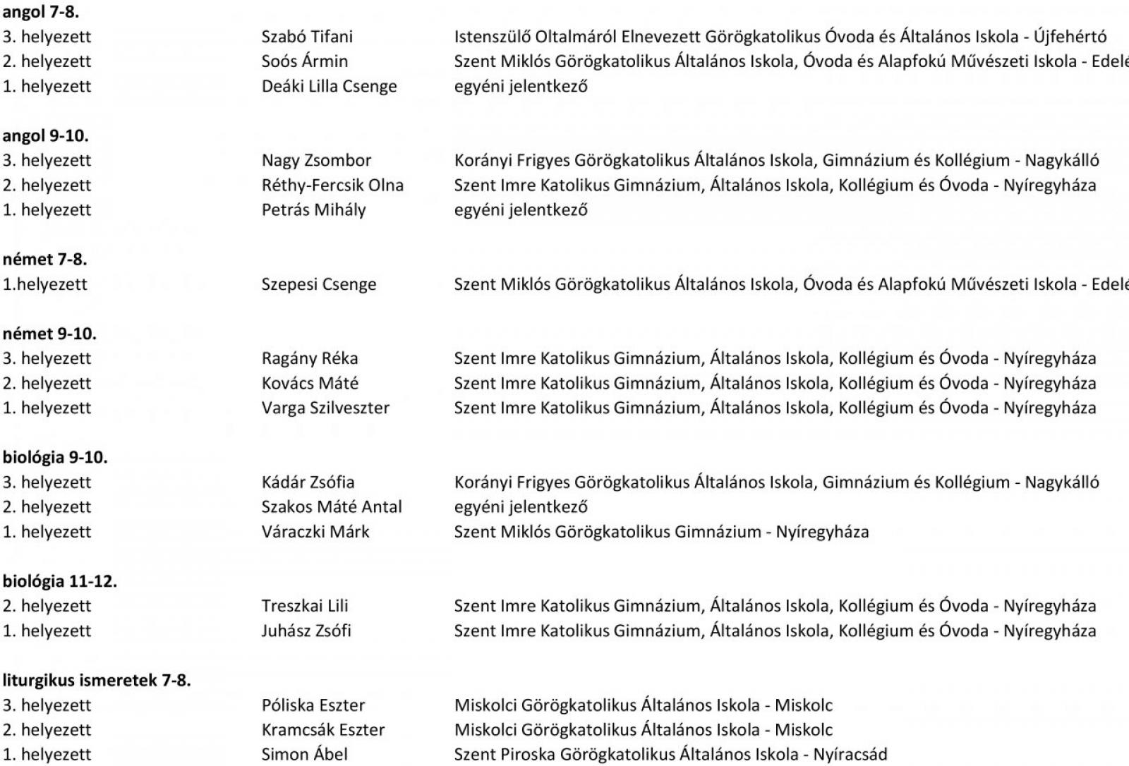 A versenynek ebben az évben is volt néhány újdonsága. Egyrészt a biológia tantárggyal bővült a paletta, másrészt a diákok önkéntes alapon kitölthettek egy Görögkatolikus 13+1 kérdésből álló TOTÓT. A totót hibátlanul kitöltők csokoládét kaptak jutalmul.