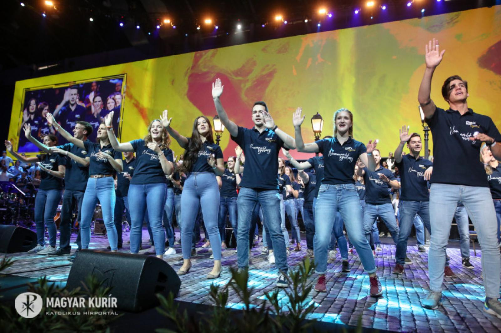 Az alkalomra összeállt csapatot Vízy Márton vezeti. „Jézus mellém állt...” – énekli. A háttérben hatalmas kivetítőn olvasható a dalszöveg, közelképben láthatjuk a zenészeket; a profizmus nyugalmával emelkedik felfelé az égbolt csillagait is idéző videómontázs. Rengeteg a fiatal, közülük néhányan már fel is állnak a székükről, énekelnek. „Áldott legyen az Úr neve” – ennek a dalnak az ereje már jól érződik, egyre többen felpattannak az ülőhelyükről, és akkor Vízi Márton azt mondja: „Szabad felállni, tapsolni, lelkendezni – és szabad nagyon szeretni.”