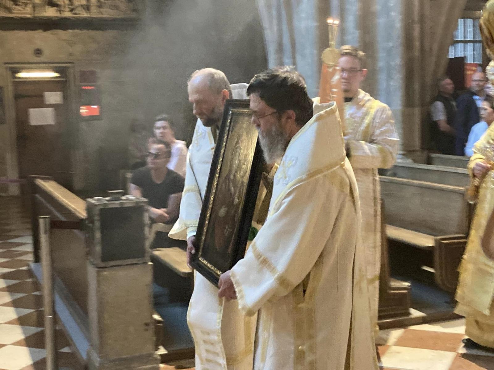A második nap végeztével a püspök atyák és kísérőik átvonultak a Stephansdomba, hogy közösen végezzenek Szent Liturgiát, melynek magyar vonatkozású különlegessége volt, hogy a liturgia előtt a szertartást végző atyák a máriapócsi kegyképhez járultak, aminek másolatát Fülöp és Atanáz atya az oltárhoz vitte.