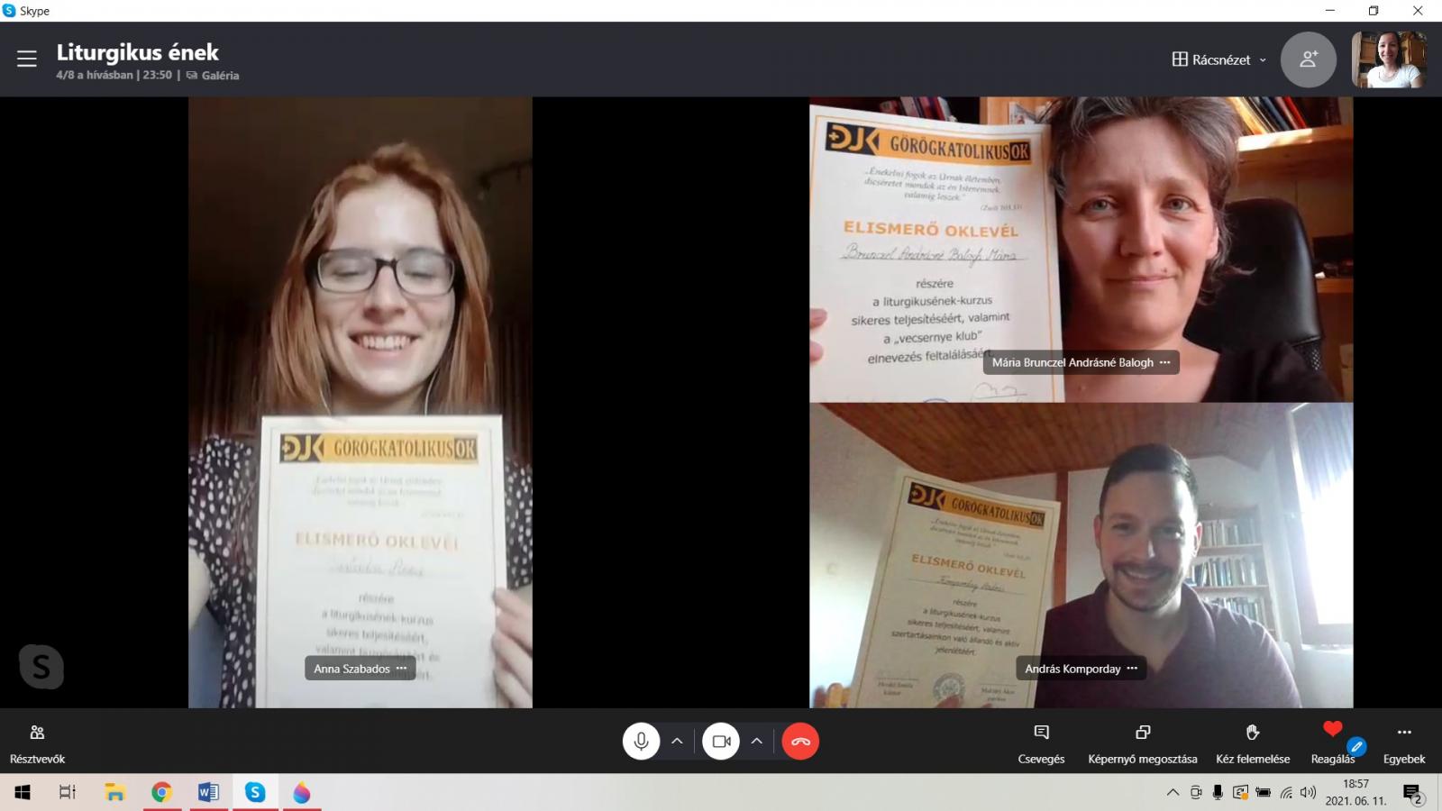 Én is szerencseként és áldásként éltem meg azt, hogy a fővároshoz kötődő parókiák híveinek szóló énekes alkalmak online szerveződtek, s így Egerből kapcsolódhattam hozzájuk. A kurzustársaim, mintha szándékosan akarnák Magyarországot lefedni, a nyugati országrészben lévő Oszkóról, a hozzánk közeli Mezőkövesdről, s a keleten fekvő Nyírturáról is csatlakoztak.