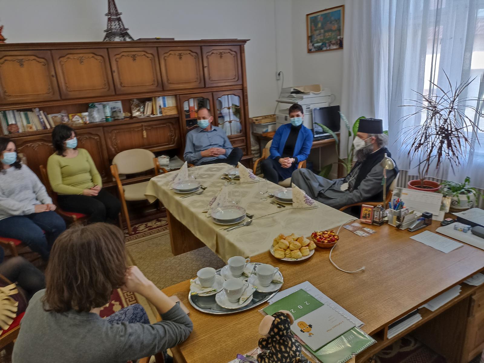 A főpásztor a februári napsütésben, kora délelőtt érkezett a Hajdúsági Görögkatolikus Gyermekvédelemi Központ Perczel utcai Irodájába. Az intézmény dolgozói lelkesen és izgatottan várták a vele való újabb találkozást. A tanácskozóteremben végzett görögkatolikus házszentelési szertartást követően a gyertyaszentelő ünnephez közeledve Fülöp metropolita atya megszentelte és megáldotta a gyertyákat majd pedig az iroda minden helyiségét is.
